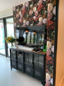 Wanden worden omgetoverd tot een enorm kunstwerk door middel van uitvergrote behangdelen met bijvoorbeeld een logo erop. Het is mogelijk om een eigen foto of ontwerp op behang te plaatsen en uitvergroot op de muur aan te brengen om zo een super exclusieve muurdecoratie te maken in het pand. De rechten kunnen worden vastgelegd, zodat niemand anders het kan gebruiken.Het gebruik van levensgrote behangmotieven is erg geschikt om een grote ruimte gezellig te maken. Doordat de patronen ongeveer 5 m breed zijn, kan aan grote oppervlaktes een bepaalde look worden gegeven. Ook kan het vertrek in verschillende sfeerdelen worden opgesplitst, afhankelijk van het gebruik van de ruimte. Een andere mogelijkheid van wandbekleding is het bespannen van stof op panelen. Een bijkomend voordeel, naast de decoratieve functie, is dat het een goede manier is om geluidsoverlast tegen te gaan. Dit is verkrijgbaar in vele variaties, zodat er mooie toepassingen ontstaan. Vergrijst, groen getint, wit of zwart, om maar even een opsomming te noemen, het is allemaal mogelijk. De sfeer kan weer naar buiten toe worden doorgetrokken met bijpassende tafels en stoelen.