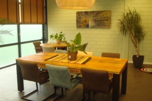 Met natuurlijke materialen werken we veel. Voor bureaus en kasten zijn vrijwel alle houtkleuren leverbaar. Tevens zijn robuuste tafels voor binnen en buiten toepasbaar. Alle afmetingen zijn mogelijk, omdat er handwerk geleverd wordt. De afwerking varieert van Italiaans strak tot nostalgisch van lijn.