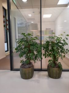 Hydrocultuur is hier een van de mogelijkheden. Planten en potten kunnen in allerlei soorten en maten worden geleverd, uiteraard passend bij de omgeving. Minder kostbaar is de grond cultuur. Dit is voor het juiste werkklimaat aan te bevelen in de juiste verhouding. Decoraties met bloemen, planten, zijde en droogmaterialen worden in eigen beheer ontworpen en gemaakt. Wekelijks een groot vers boeket op de balie of een grote pot gevuld met stammen van bijvoorbeeld een berk gecombineerd met zijde orchideeën die het sfeerbeeld bepalen. Per seizoen kan dit omgewisseld worden. Abonnementen zijn op dit gebied mogelijk.