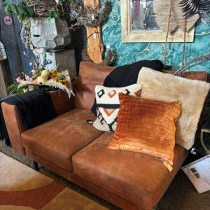 Bruin cognac, geruwd leer Essenza 5, geïmpregneerd, elementenbank, 2,90 lang en 1 m diep , model Alphonse van Brik group, zwarte ijzeren Texas poot ( op voorraad ) v1 g