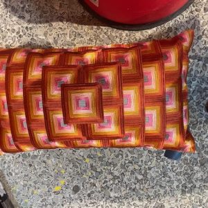 Oranje roze oker gemeleerd kussen fluweel 35x60cm langwerpig, Diga Colmore genaamd Cushion Lira orange, achterkant beige linnen, inclusief binnen kussen ( op voorraad) V2