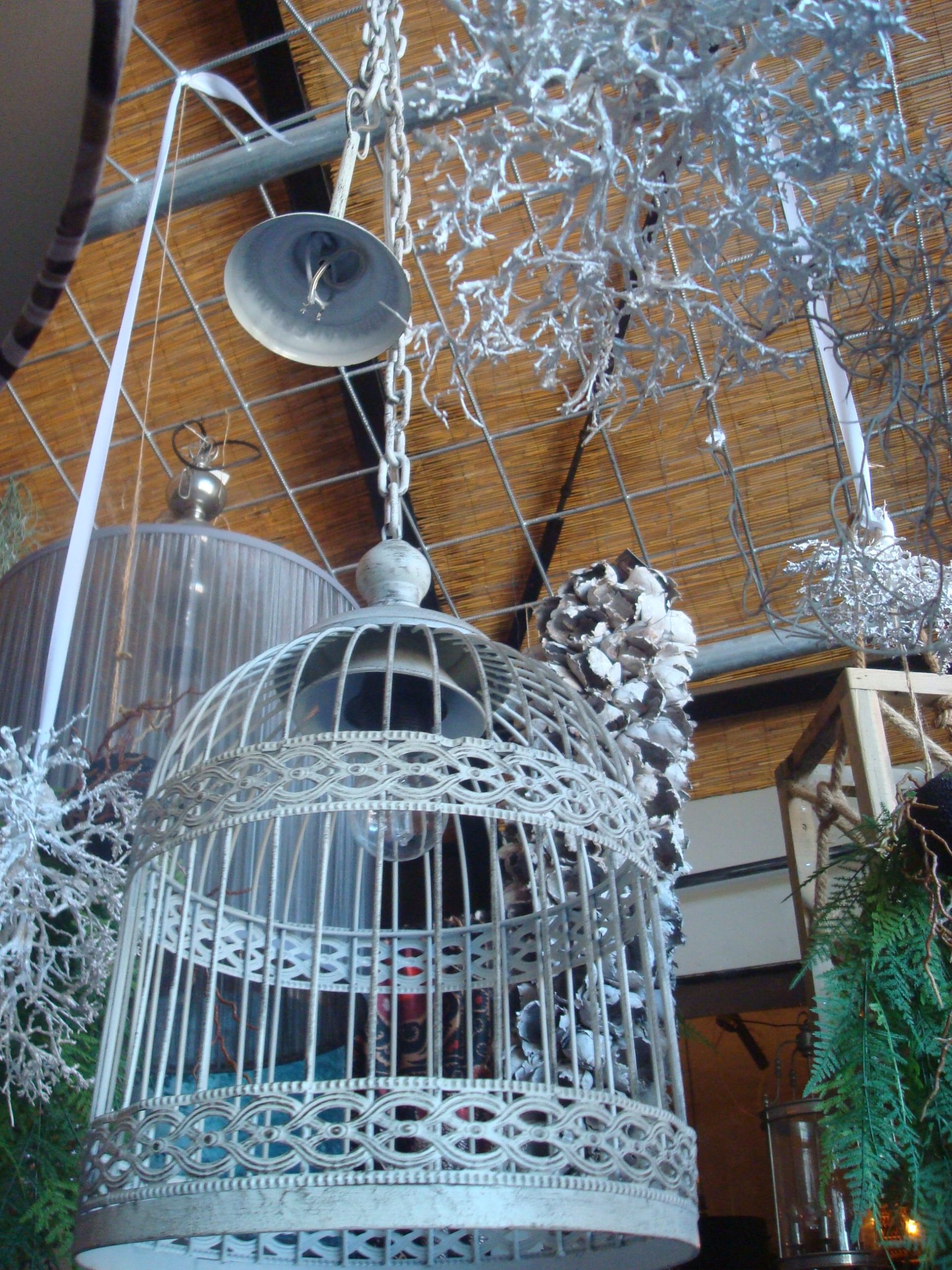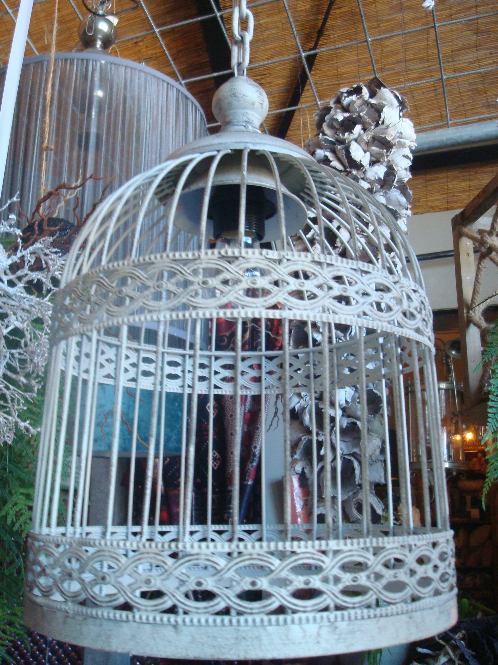 wit, ijzer, Art Sensation, vogel kooi hanglamp/lamp met ketting en lamp houder (op voorraad) v1