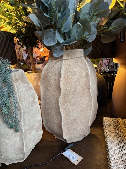 beige aardewerk mat, Lauco, plant pot / bloem vaas met organische lijnen , 33 breedte x 33 diepte x 50 hoogte cm ( op voorraad ) V1