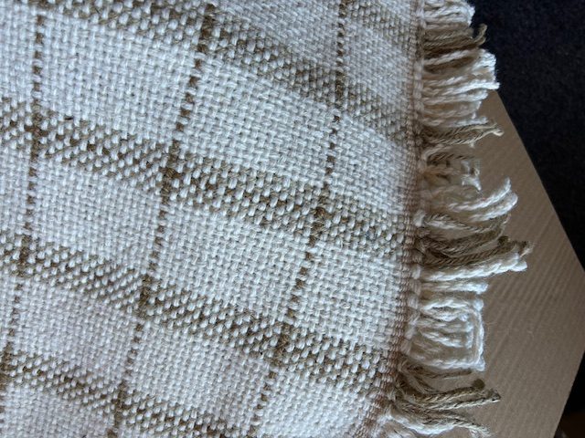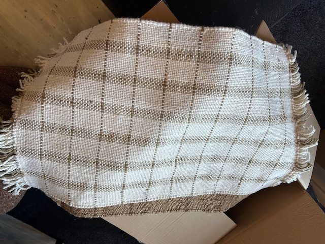 Beige bruin katoen / wol geblokt patroon met franjes, runner tafel loper, Lime-Light, rechthoek lengte: 60cm breedte: 100cm (op voorraad) V1