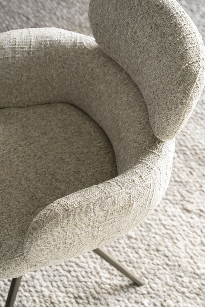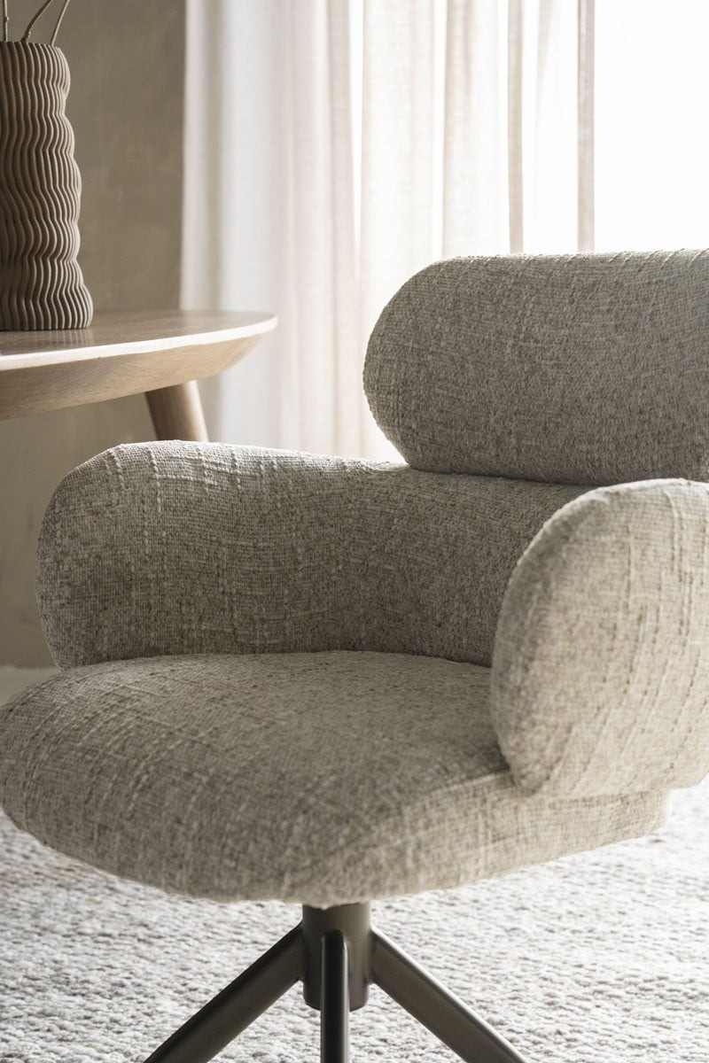 Beige, stof Gleam, bureau/eetkamer stoel, breedte: 62 cm, diepte: 65,5 cm, zithoogte: 50,5 cm, armhoogte: 68 cm, totaalhoogte: 87 cm, Eleonora model Darcio met een brons metaal draaiend onderstel, incl. korting ( op Voorraad ) V1