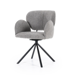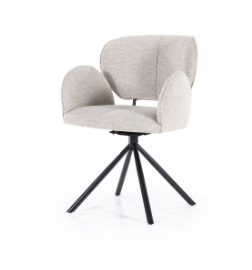 Beige, stof Moon, bureau/eetkamer stoel, breedte: 60.5 cm, diepte: 61 cm, zithoogte: 50 cm, armhoogte: 69 cm, totaalhoogte: 83.5 cm, Eleonora model Rosalin met een zwart metaal draaiend onderstel, incl. korting ( op Voorraad ) V1