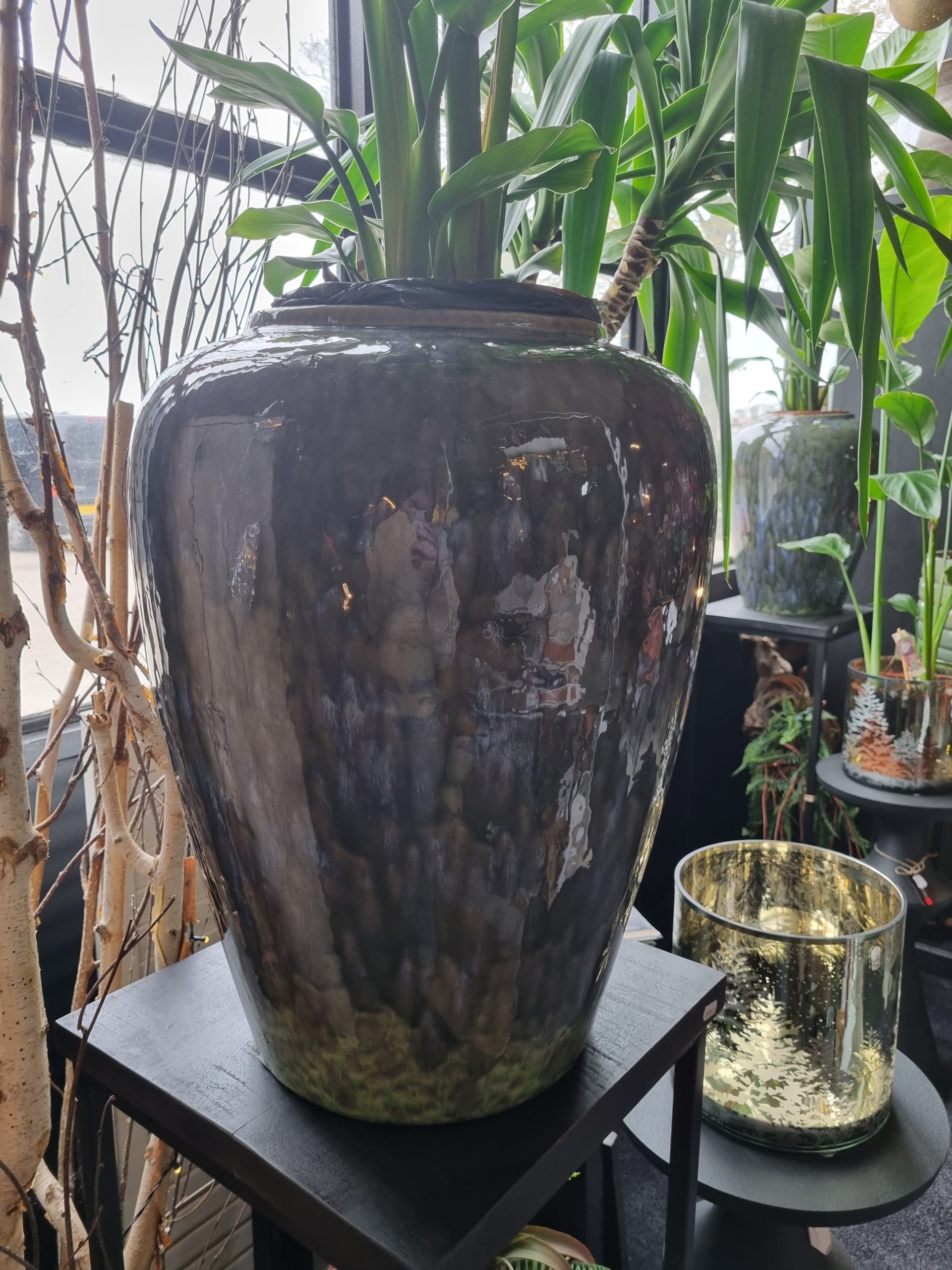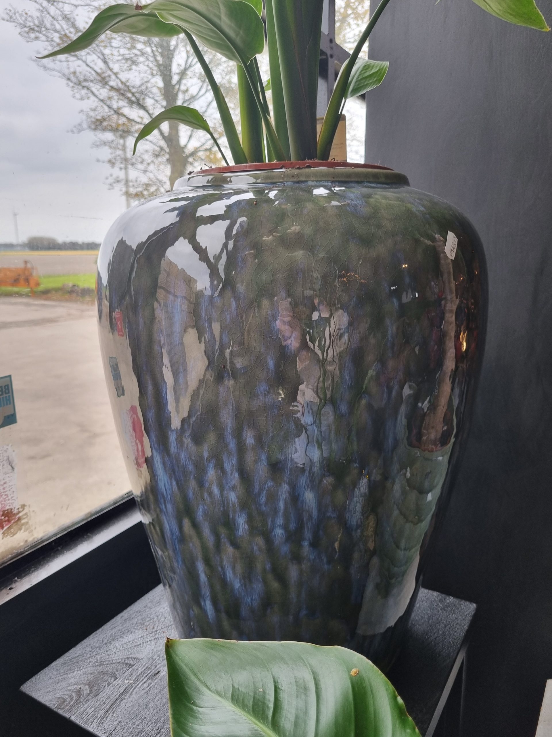Groen geglazuurd aardewerk plant pot bloem vaas, 52 cm hoog x 40 cm doorsnede, Ter Steege / , voor binnen (op voorraad) V2
