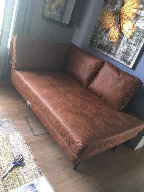 Wees de eerste om “Bruin cognac, 1.90 lang en 1.20 diep. BRIK Group, lederen bank canape lounge island long eiland lig deel model Adele stof Essenza 5 leer geïmpregneerd, met zwarte ijzeren poot Het Island bestaat  is 1.90 lang met 2 losse rug kussens 90 en 60cm en dan een stuk zonder kussen van 40cm het Island deel ( op voorraad ) V1” te beoordelen