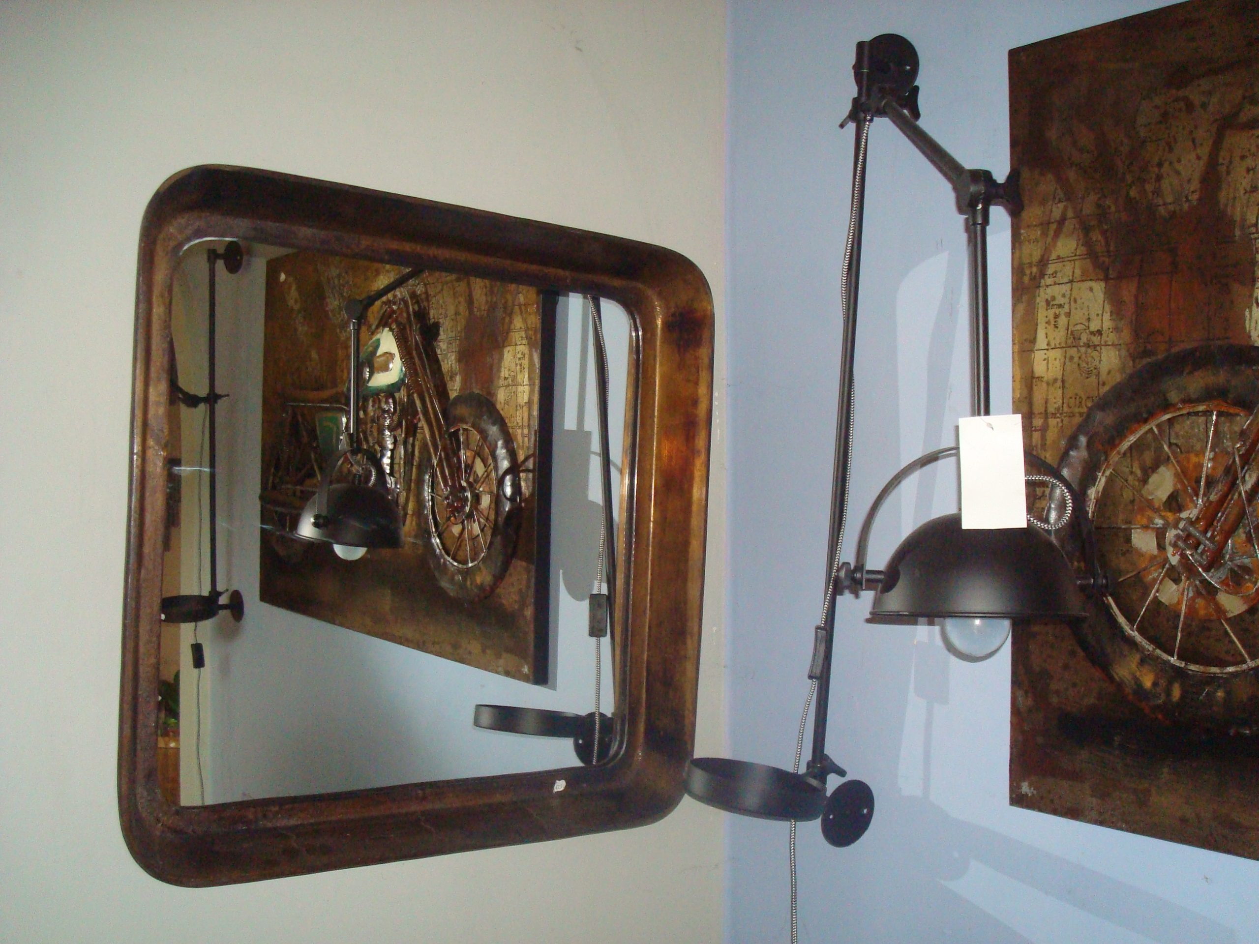 brons spiegel met bredere rand metaal, Light & Living, spiegel brons opstaande rand 68 breed en 68 hoog rand 10 cm diep (op voorraad) V1