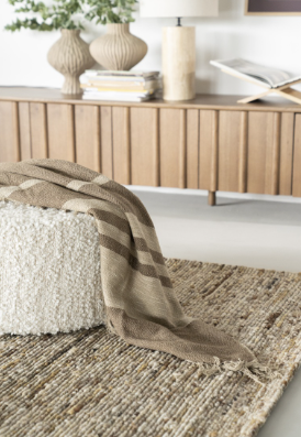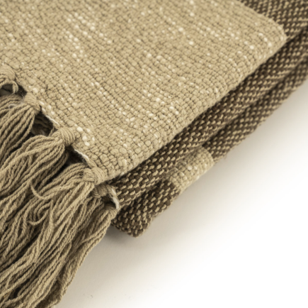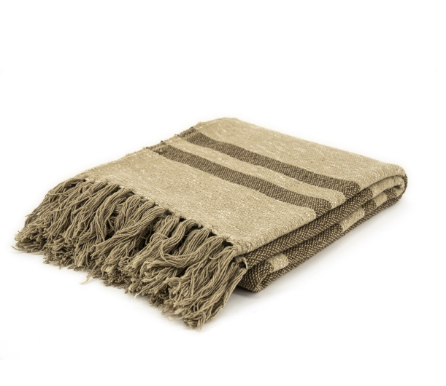 Bruin beige met strepen en franjes 100% katoen, plaid sprei 130×170 cm, By Boo, Plaid Linje( op voorraad ) V4