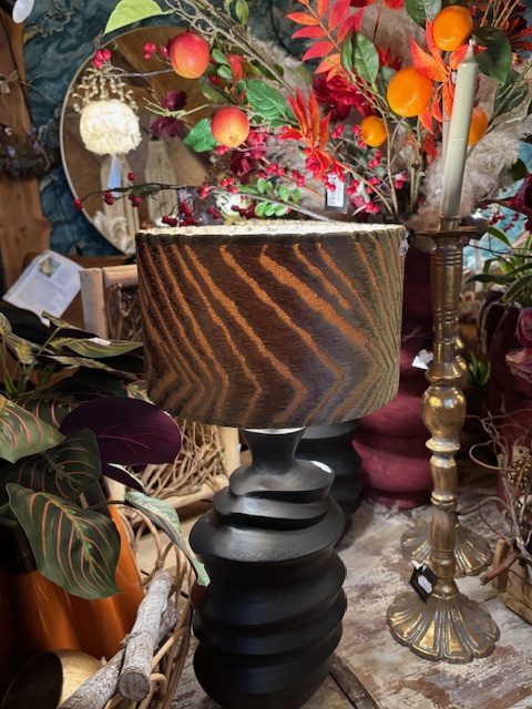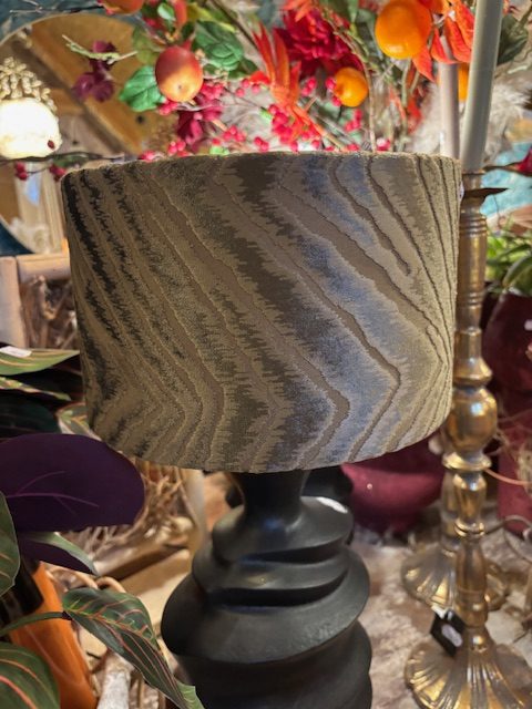 bruin fluweel, brown shade motief Zigzag, transparante binnenkant, Diga Colmore, cilinder rond model, 25cm doorsnede en 15 cm hoog kan als hang en op staande voet worden gebruikt worden (op voorraad) V2