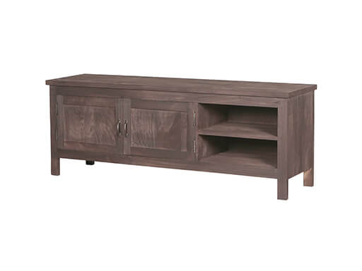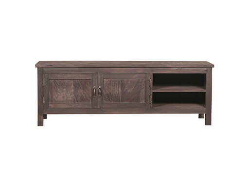 Bruin massief hout tv televisie wand meubel kast dressoir, Hoogendam Interiors by Mooss, : 2 deurs links met midden plank, rechts open vak met midden plank, 1.63 lang 53 hoog en 41 diep v0