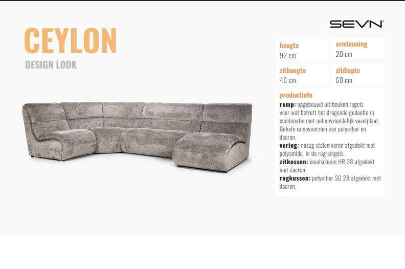 Ook is de bank leverbaar in de meest mooie stoffen van Sevn hierbij de link voor u stofkeuze: https://sevn.nl/stofgroepen/