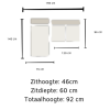 De elementen kunnen dus door het door gestoffeerd en koppel systeem links of rechts worden geplaatst of los in de ruimte worden verwerkt. De zithoogte: 46 cm, zitdiepte: 60 cm, totaalhoogte: 92 cm,