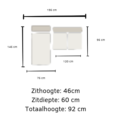 Bruin taupe, fluweel met een vleug, stof C fusion 109 desert, 1.95cm lang en 95 diep, elementenbank 2 delig met vaste kussens, deel 1 : sofa zonder armen het lig deel 0.75 breed en 1.45 lang deel 2 : 1. 20 zonder armen, Sevn model Ceylon, incl. 15% korting (op voorraad) V1 g
