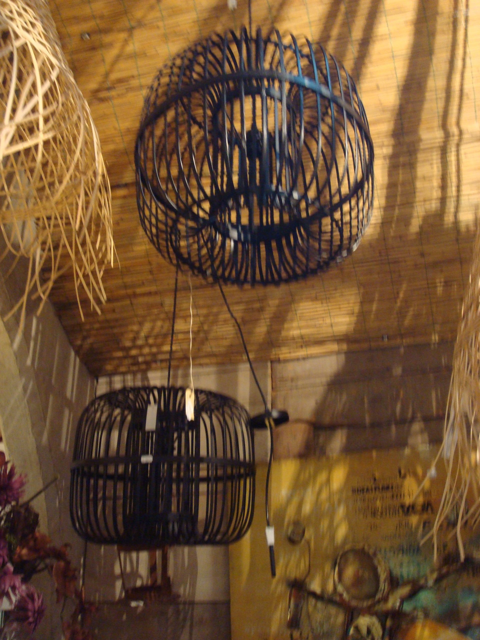 zwart rotan metalen frame zwart, By Boo, Sundown – small lamp/hanglamp compleet met pendel en plafondplaat kan ook staan sfeervol sieraad 46x46x37 cm. ( op voorraad ) V1