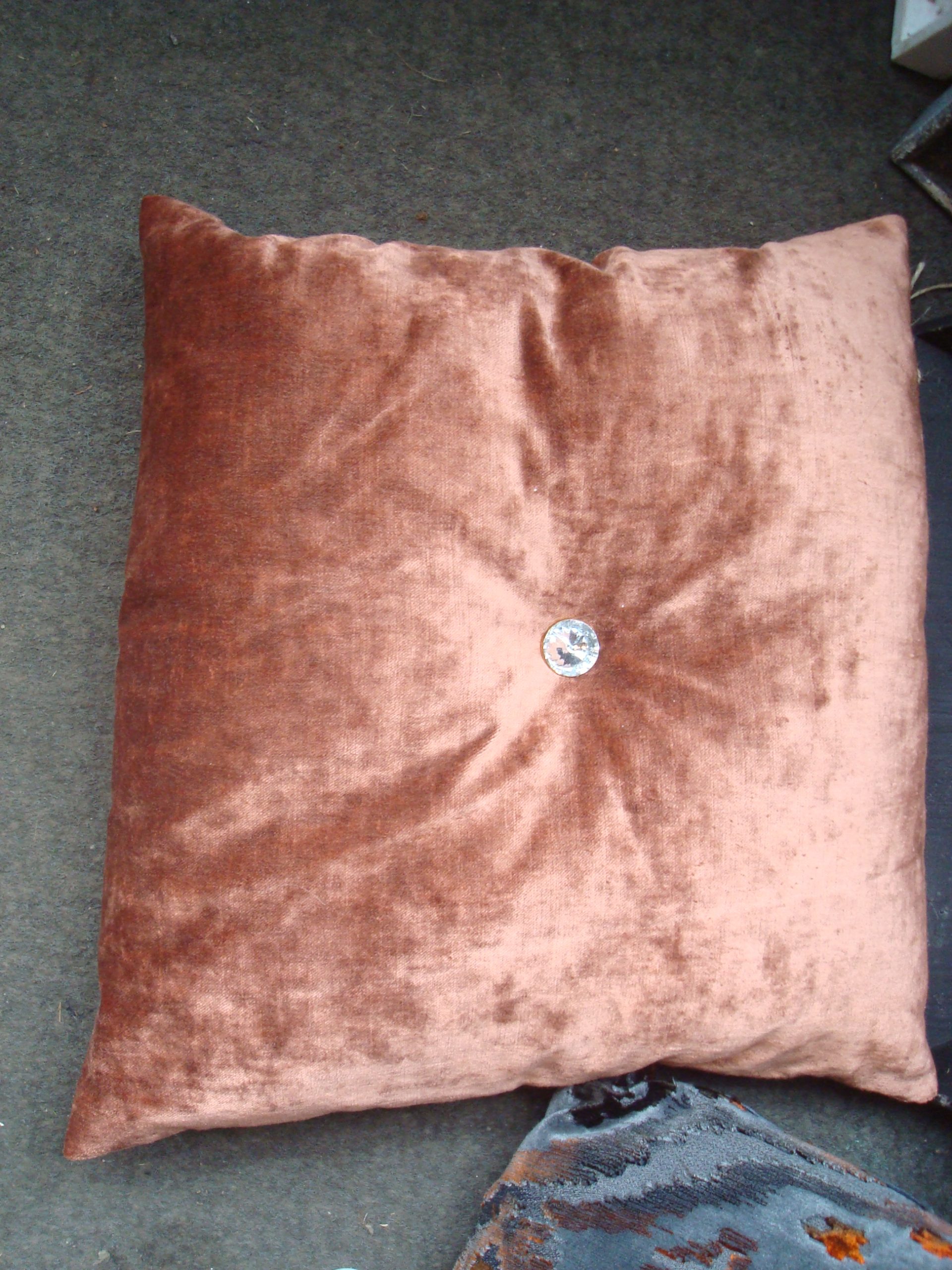 Bruin roest brons kussen 45x45cm vierkant, Claudi, met binnen kussen fluweel met capiton met steen (op voorraad) V3