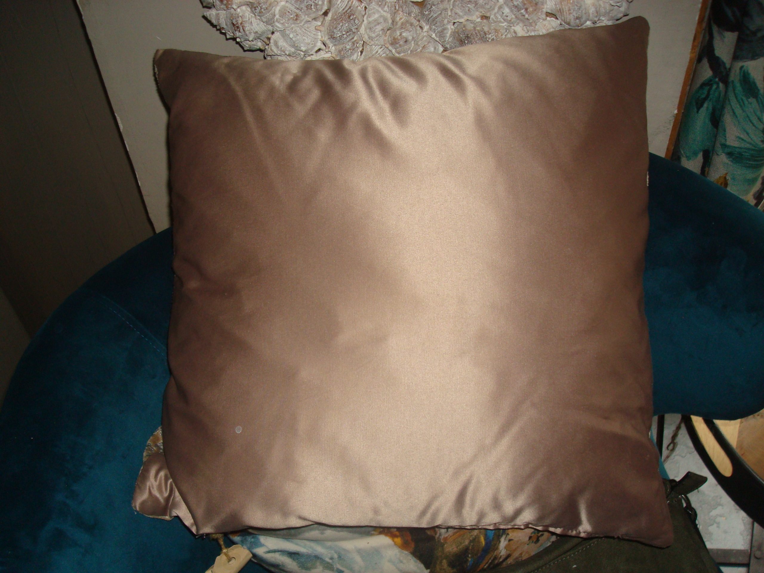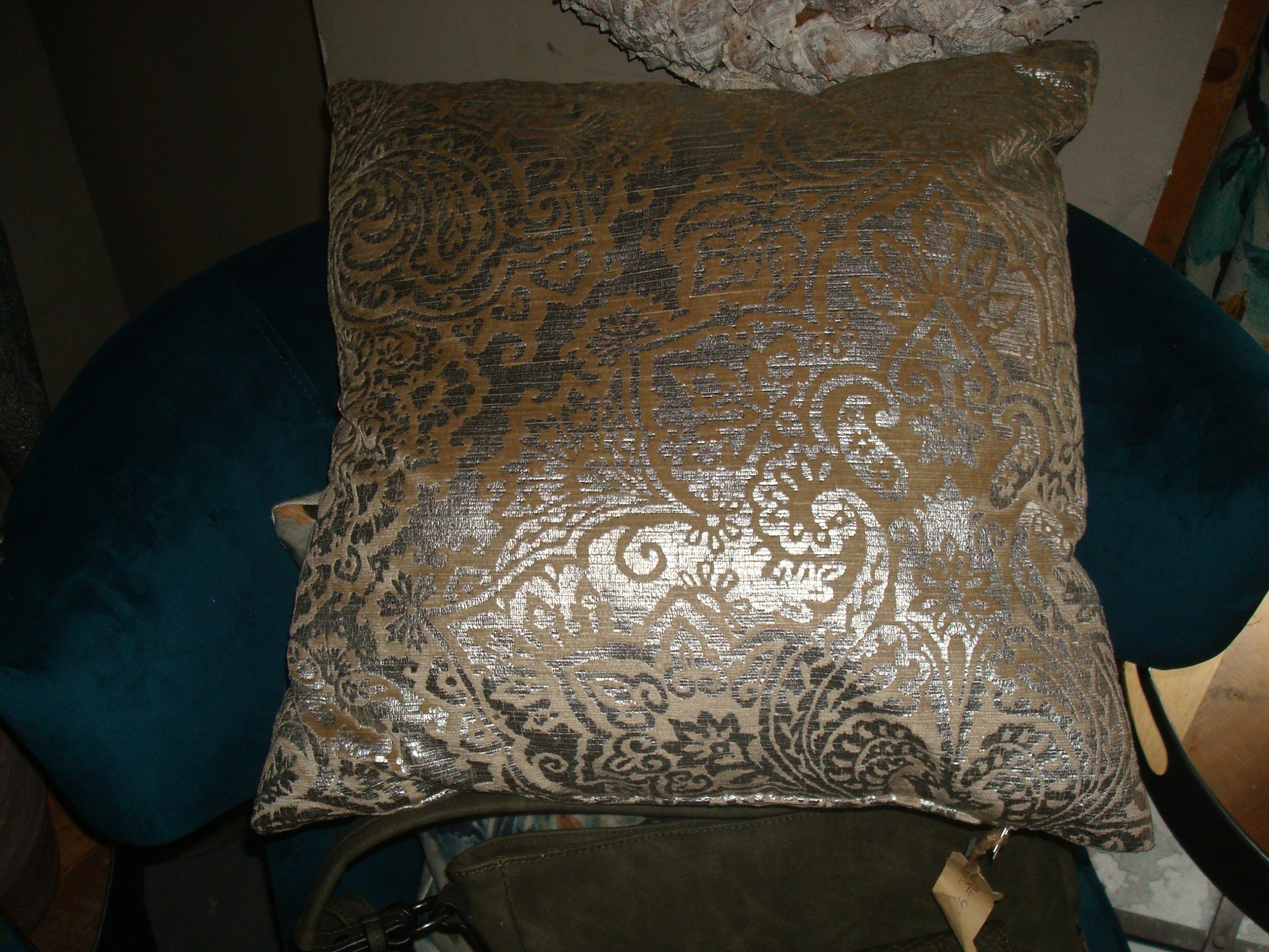 zilver beige Kussen 45x45cm vierkant, Claudi, print en effen achtergrond beige (op voorraad) V1
