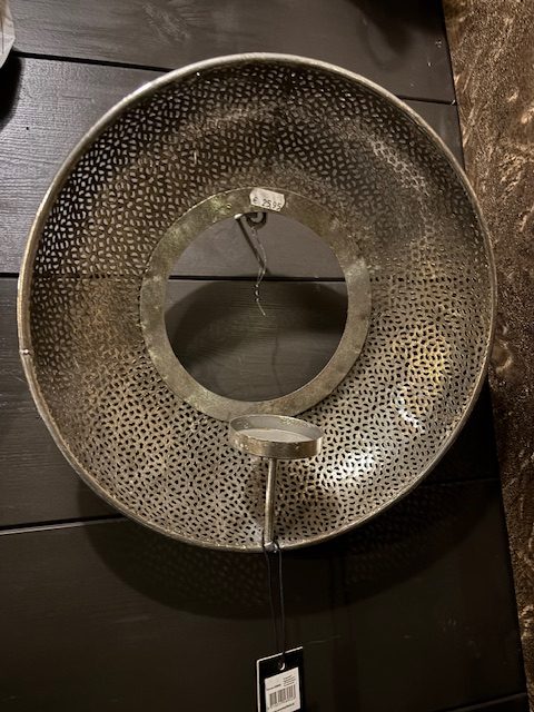 Zilveren hang windlicht, met ophang haak van, Decostar, theelichthouder, Uriel diameter rond 32x32x diep 10 cm. (op voorraad) v 1