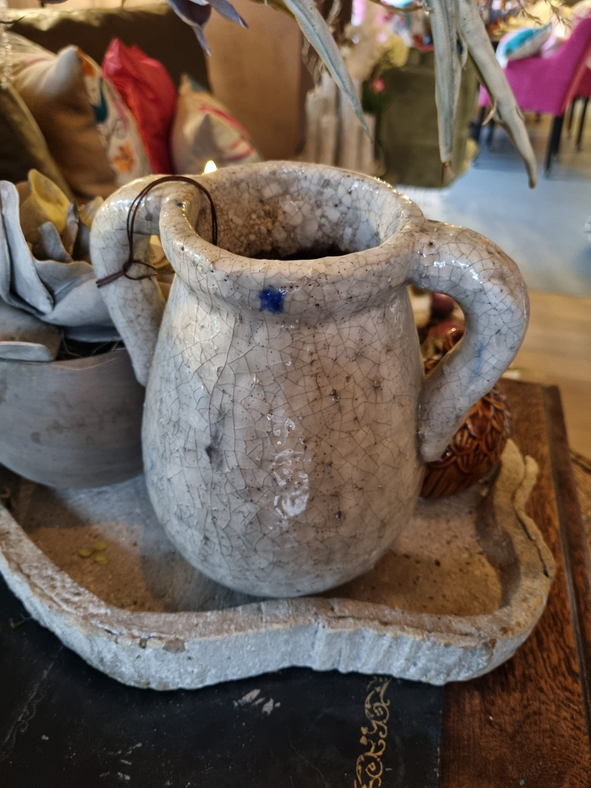 Grijs, aardewerk, Luimes & Luimes, geglazuurd craquelé bloem vaas plant pot Vienna 6-4 P 20x15x20 (op voorraad) v1