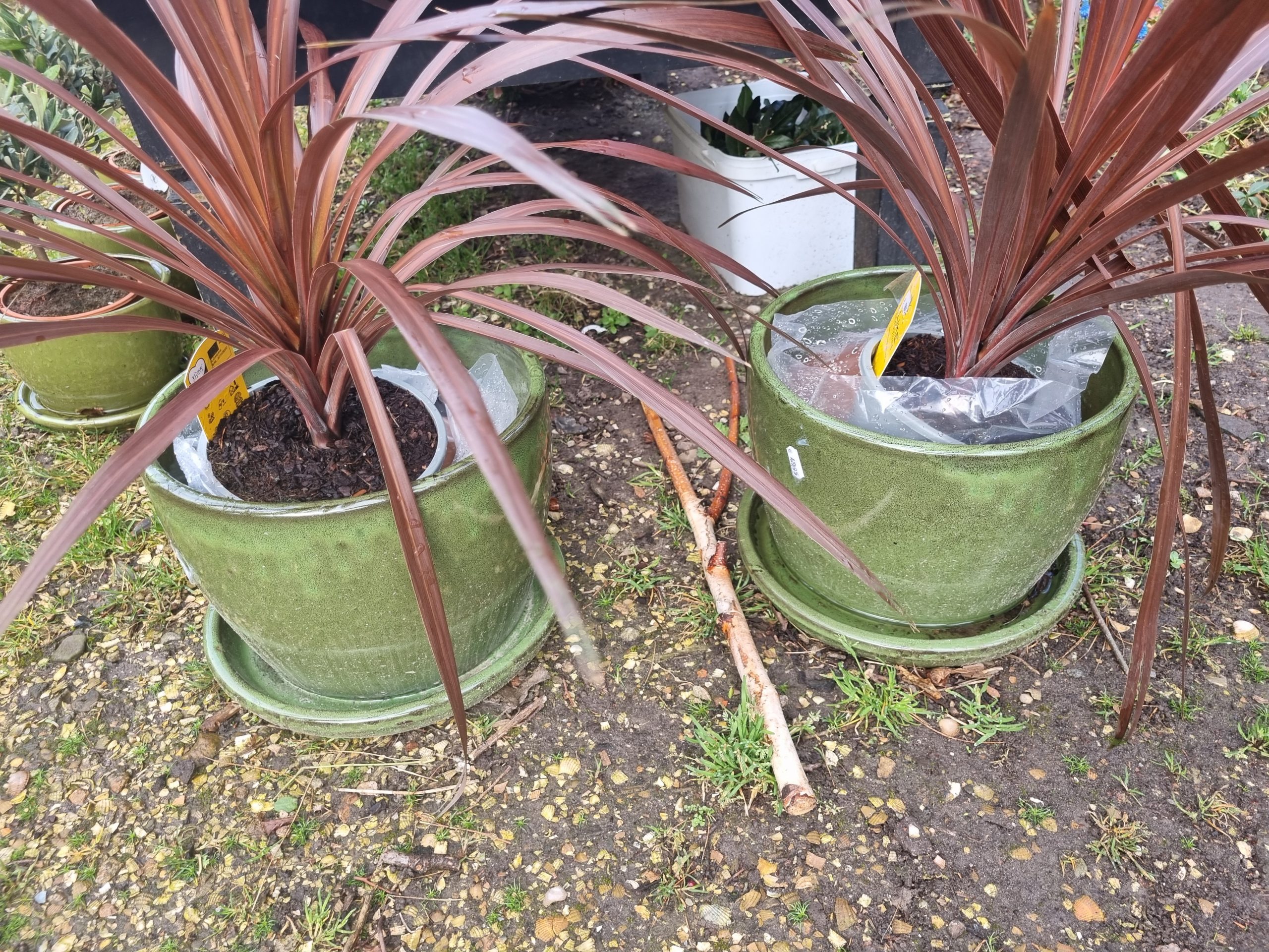 Groen aardewerk, Waterdrinker / Nieuwkoop, plant pot bloem vaas aardewerk geglazuurd kan ook buiten gebruikt worden met vaste schotel eronder, rond 29 x 22 hoog cm. (op voorraad) V2