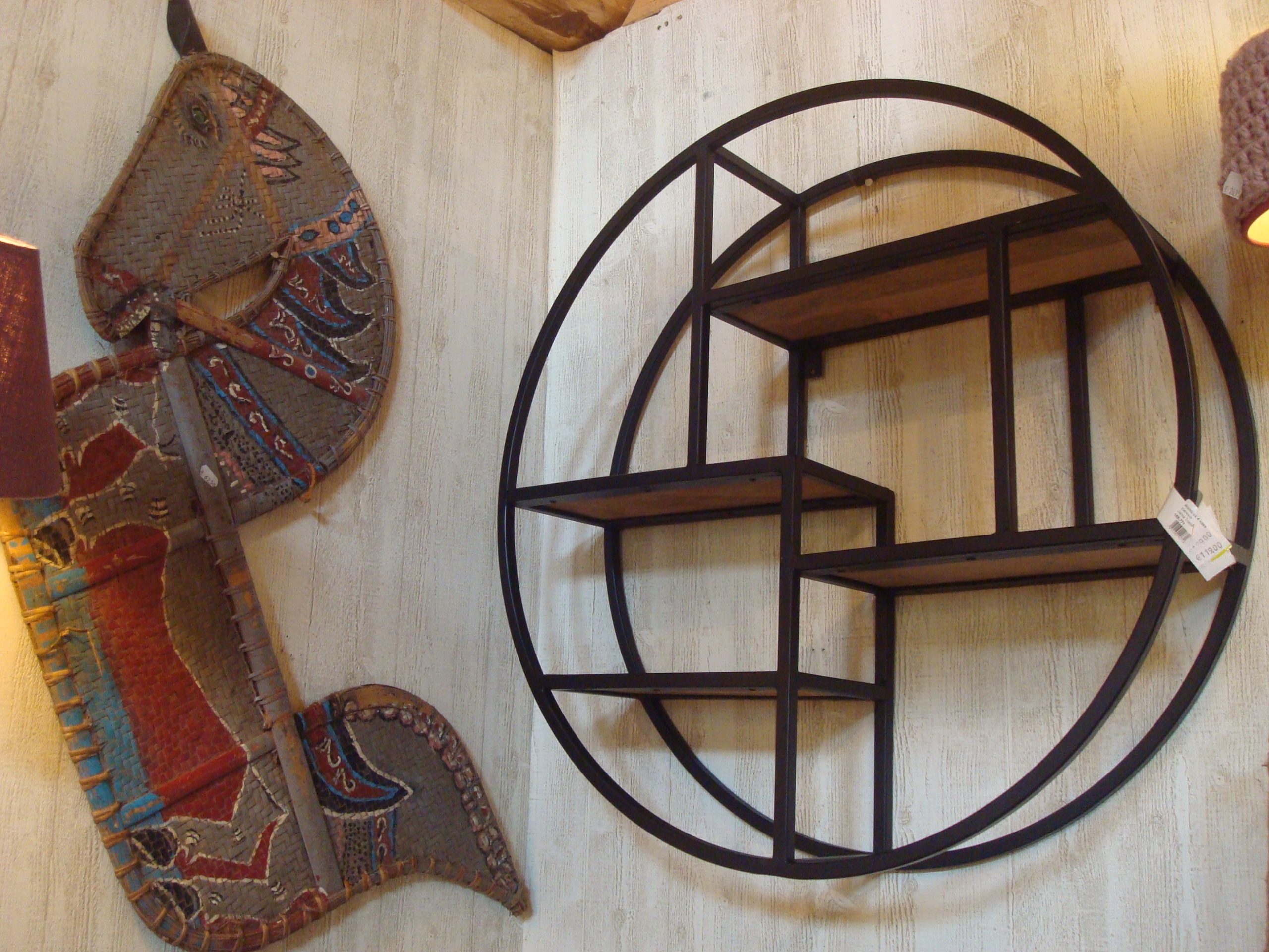 hout met ijzer rond zwart Wand rek muur houder plant boek rond 4-vaks ijzeren basis zwart met 4 houten planken, Varios de doorsnede 80 diepte 20 cm. incl. 2 ophang punten keurig weggewerkt v0