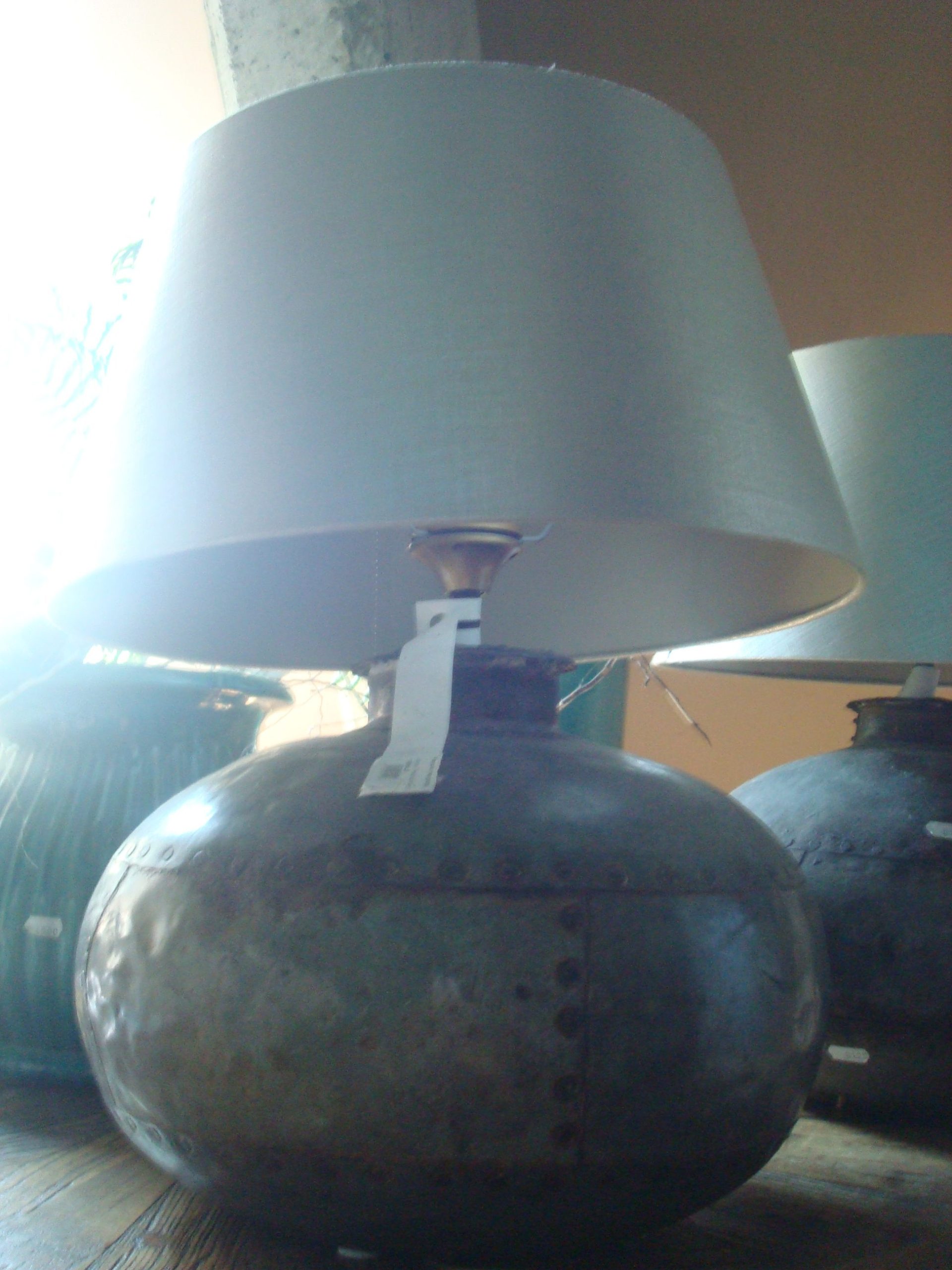 grijs metaal, Varios, ronde sfeer lees tafel lamp staand , ronde voet hand werk gaaf element handwerk 30×30 doorsnede x hoog 26 cm. ( op voorraad) V 2