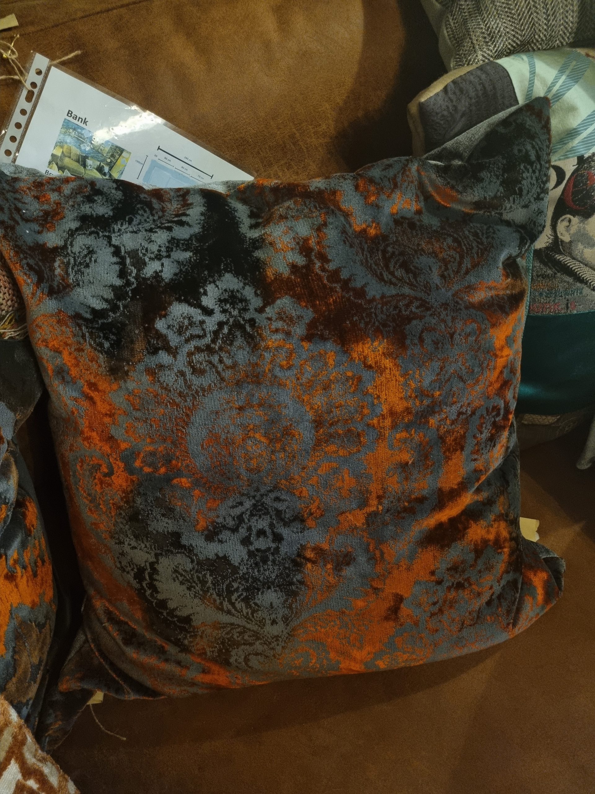 Bruin roest zwart kussen 60x60cm vierkant, M.M. Metamorphosis, prachtig fluweel motief grijze achterkant incl. binnen kussen Nederlands fabricaat (op voorraad) V1