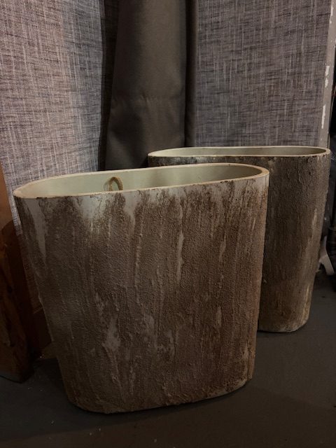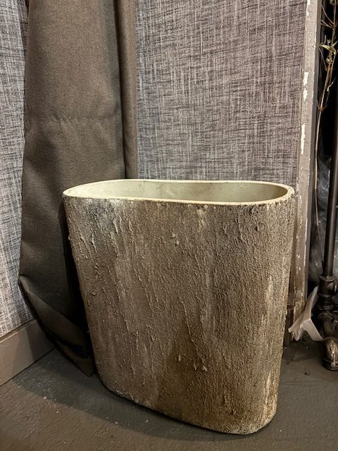 bruin crème zand, Luimes & Luimes, aardewerk plant pot bloem vaas tanger rustiek creme 34 lang en 38 hoog en 14 doorsnede cm langwerpige hogere ovale vorm bloem vaas plant pot aardewerk ruwe buitenkant geleefd ( op voorraad ) v1