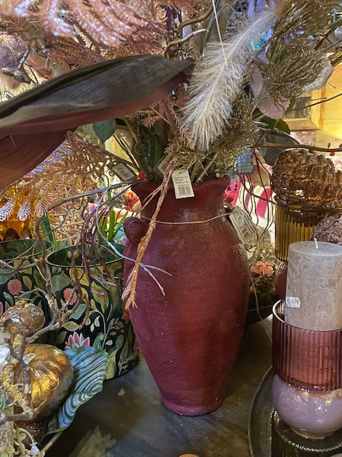 Rood bordeaux, aardewerk, Luimes & Luimes, geglazuurd craquelé: bloem vaas plant pot kruik 20x20x42 (op voorraad) V1