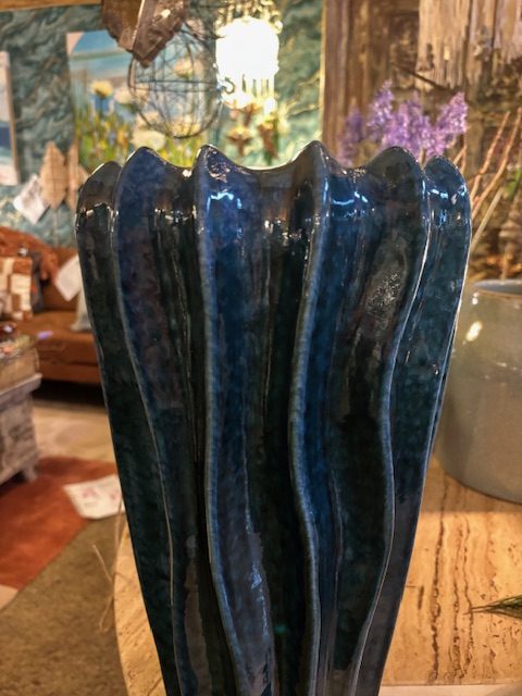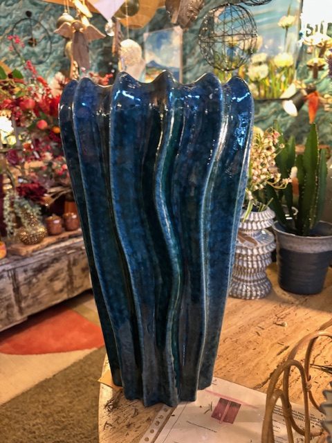 blauw aqua, Luimes & Luimes, bloemen vaas / plant pot, aardewerk geglazuurd keramiek, CORSICA 3_2 DARK GREEN REACTIVE 23,5X41CM (op voorraad ) V 1