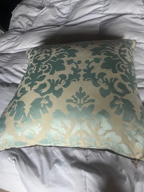 Blauw beige zilver details kussen 40x60cm langwerpig, Claudi, achterkant grijs effen bijpassend bij de voorkant incl. binnen kussen (op voorraad) V2