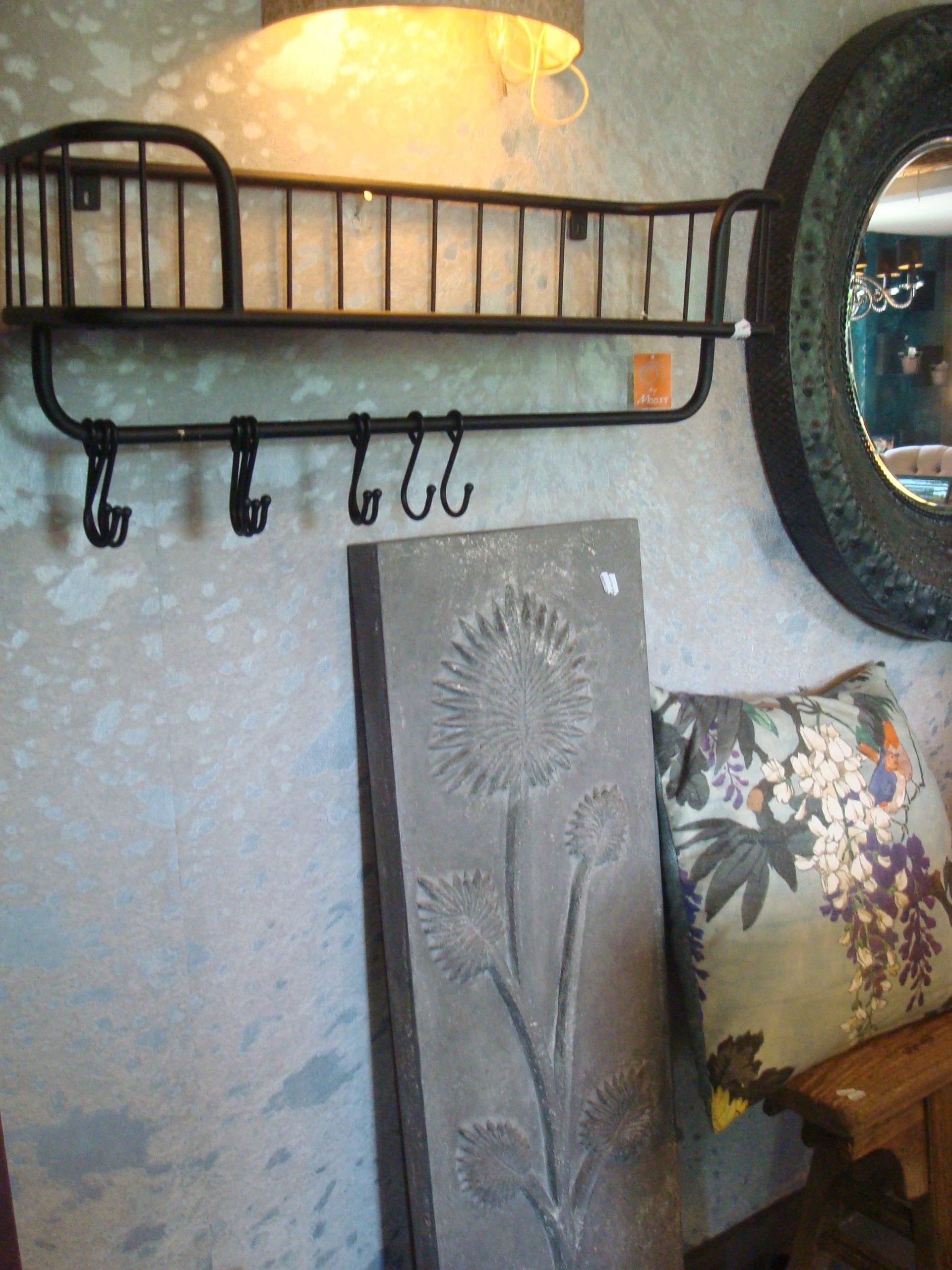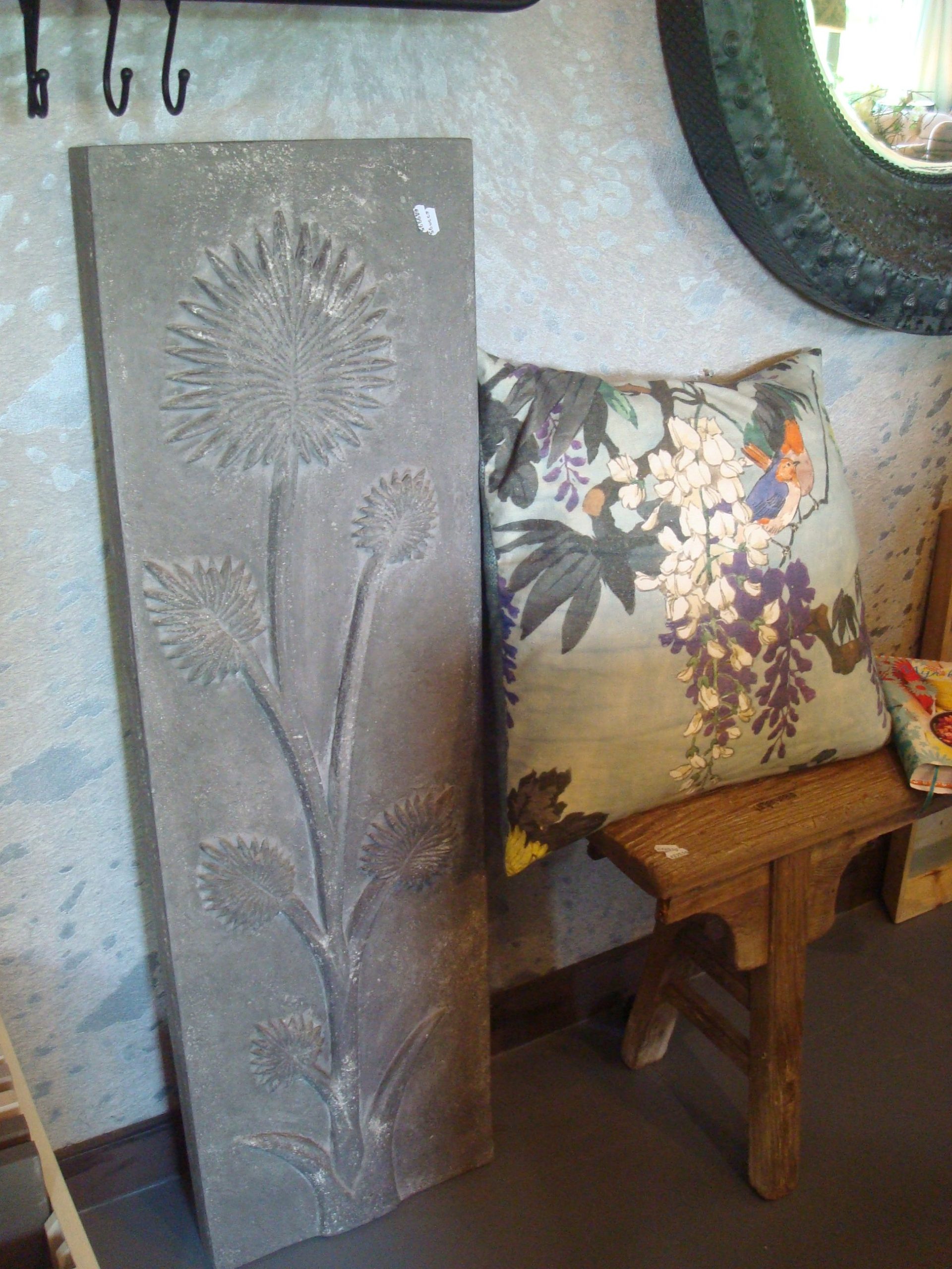 De muur decoratie is een gegoten polystone product in een vergrijsde kleur. Het is voorzien van een ophanghaak.