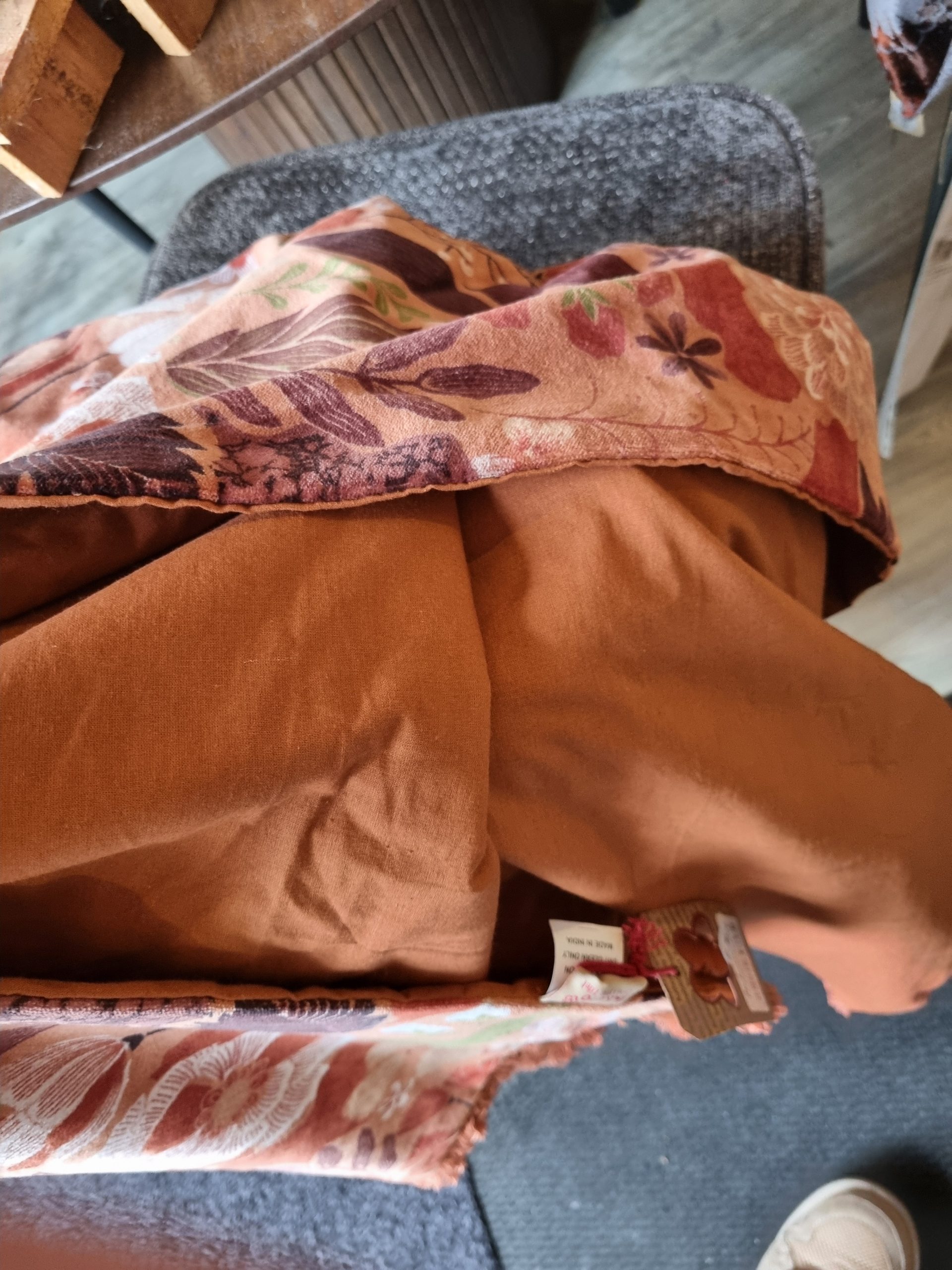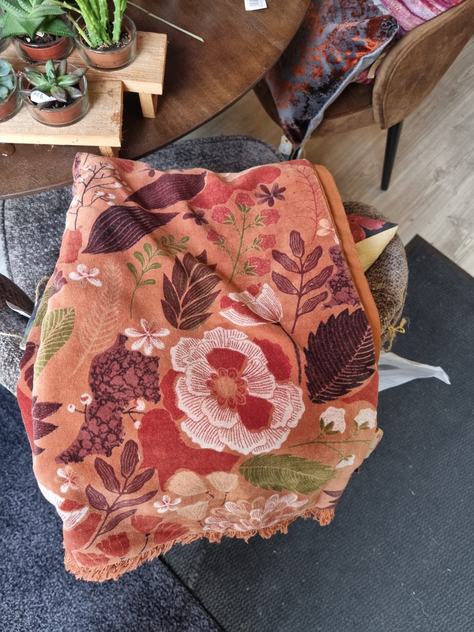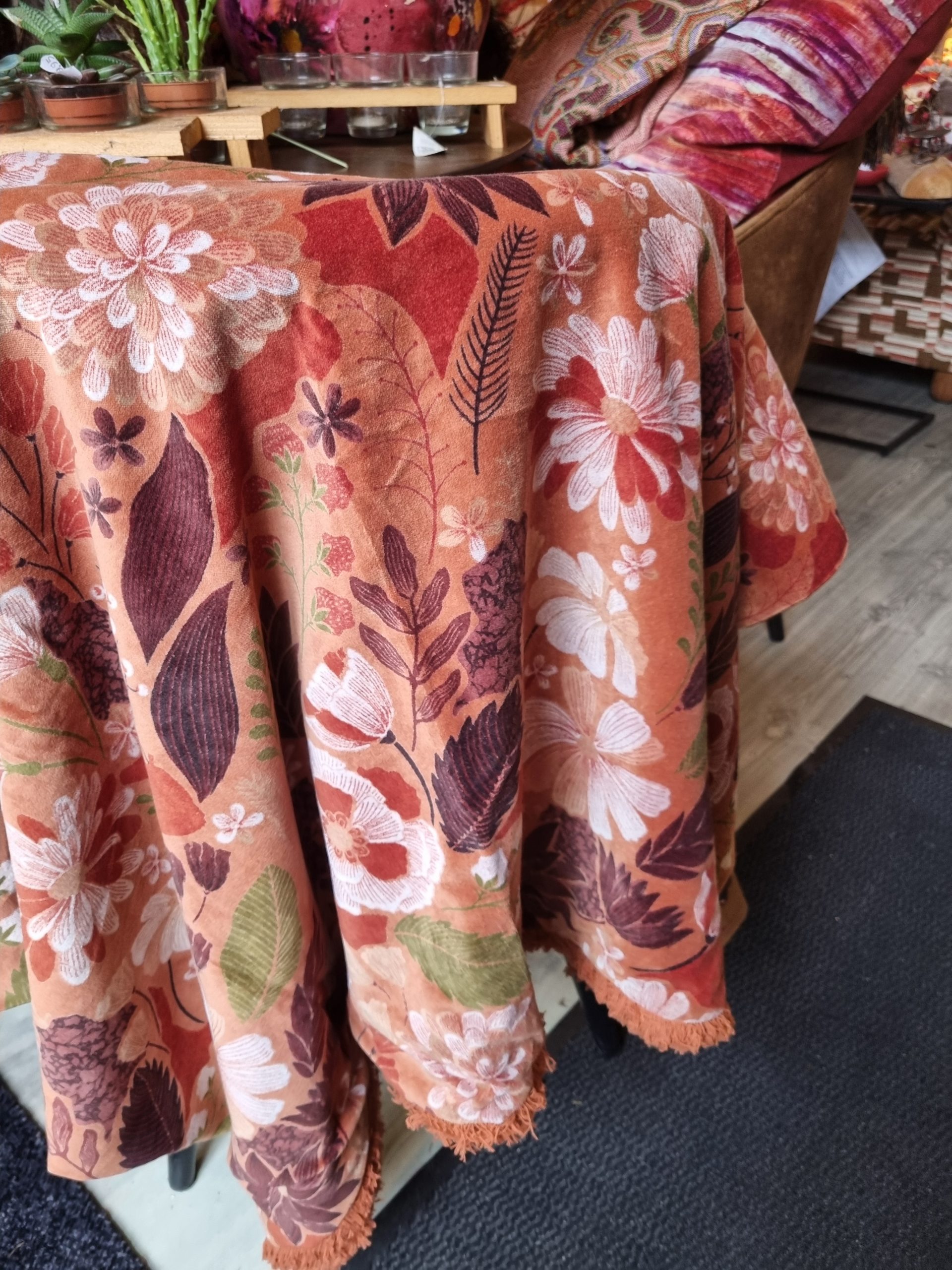 Bruin met bloemen gemêleerd plaid fluweel 130 x 170 cm 100% katoen, Imbarro, genaamd Throw Mye caramel , achterkant effen wandkleed/tafelkleed/ bed loper/sprei/plaid/kleed, ( op voorraad) V1