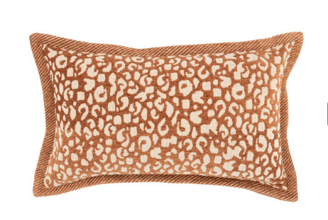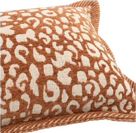 Oranje terracotta beige kussen met panterprint 40x60cm Viscose en katoen, By Boo, Pillow Cowy, achterkant oranje beige met strepen, incl. binnen kussen ( op voorraad ) V6