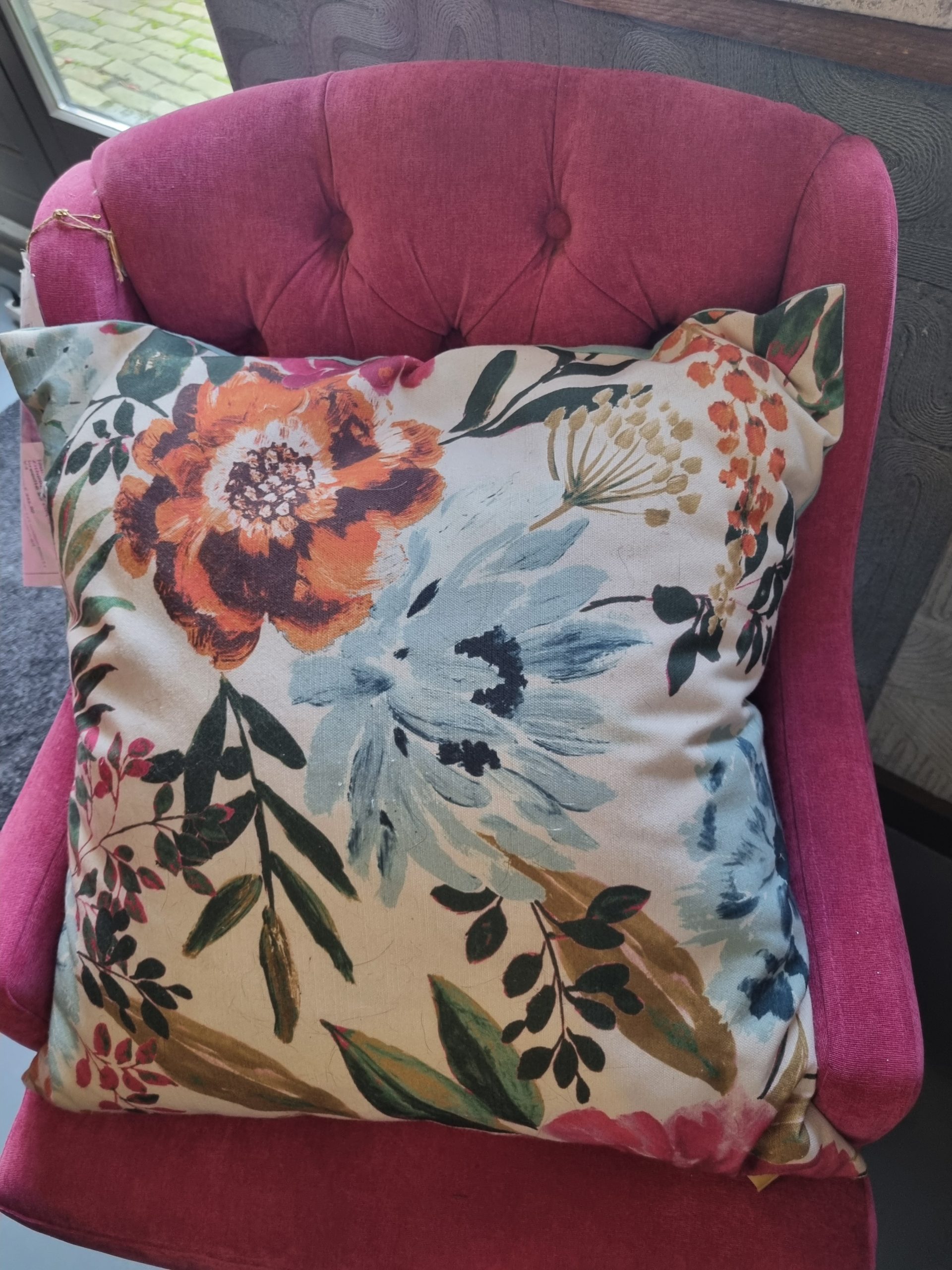Wees de eerste om “Roze blauw kussen 60x60cm vierkant, M.M. Metamorphosis, diverse bloem en groen linnen, achterkant blauw zacht, incl. binnen kussen (op voorraad) V1” te beoordelen