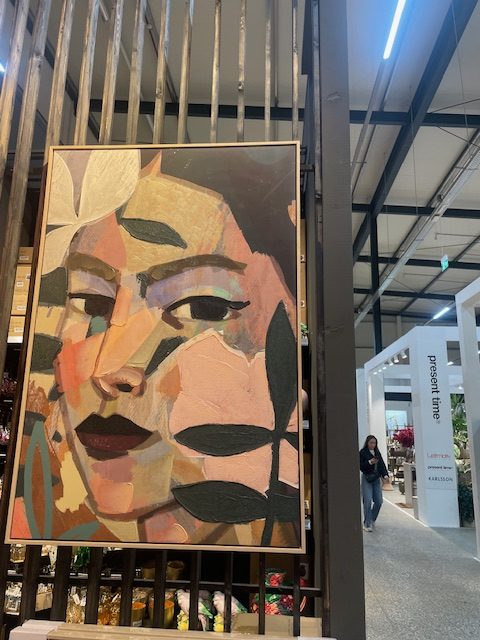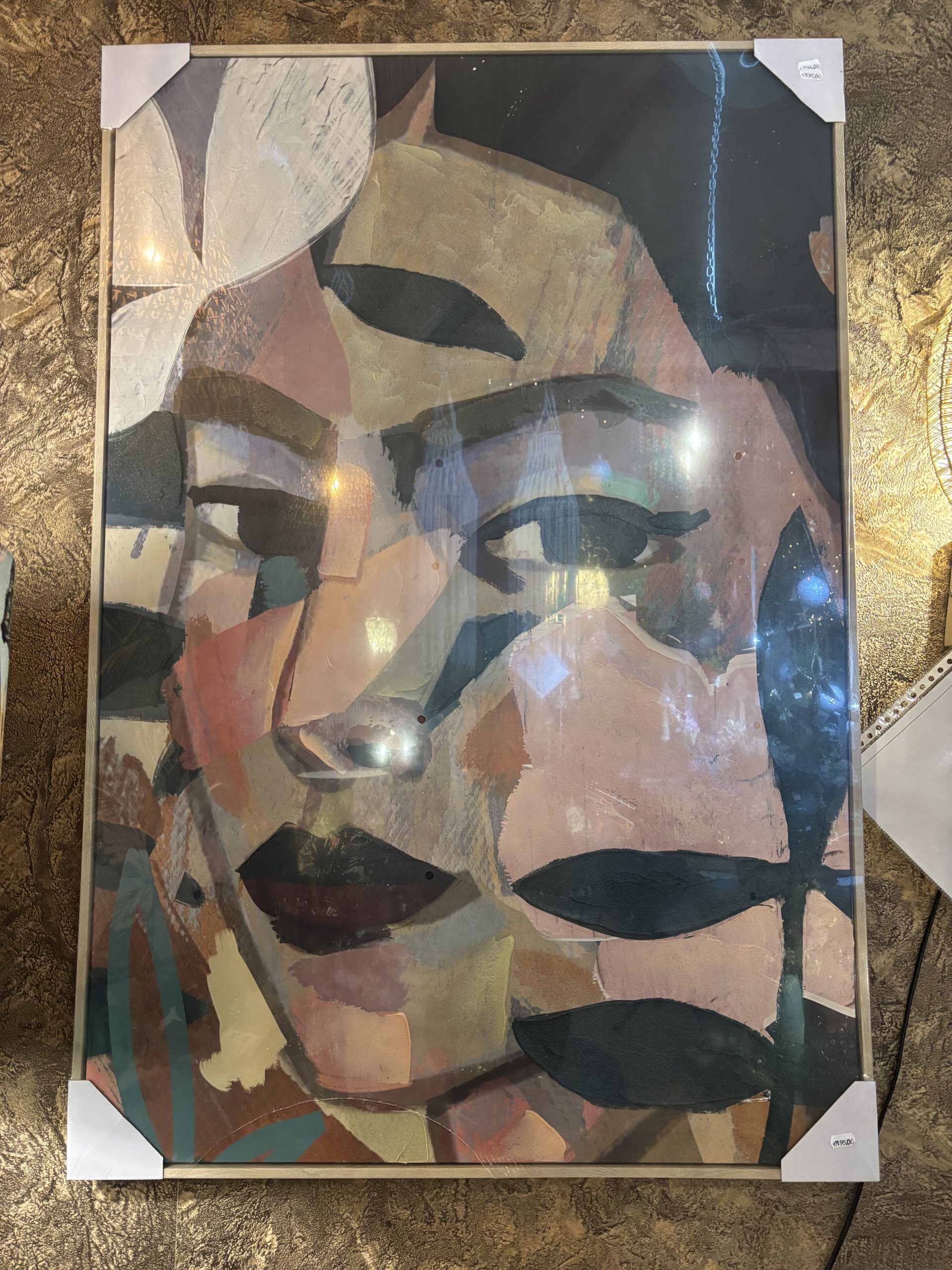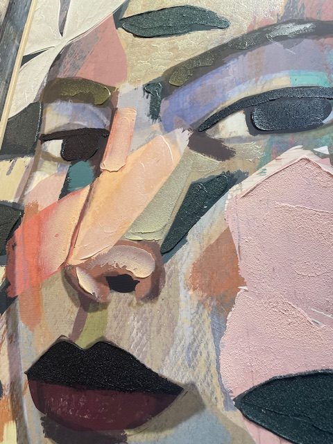 Roze groen blauw gemêleerd gezicht dik geschilderd op doek met houten frame schilderij, 80cm breed x 120 cm hoog, Kersten B.V., Wall frame Canvas Multi (op voorraad) V1