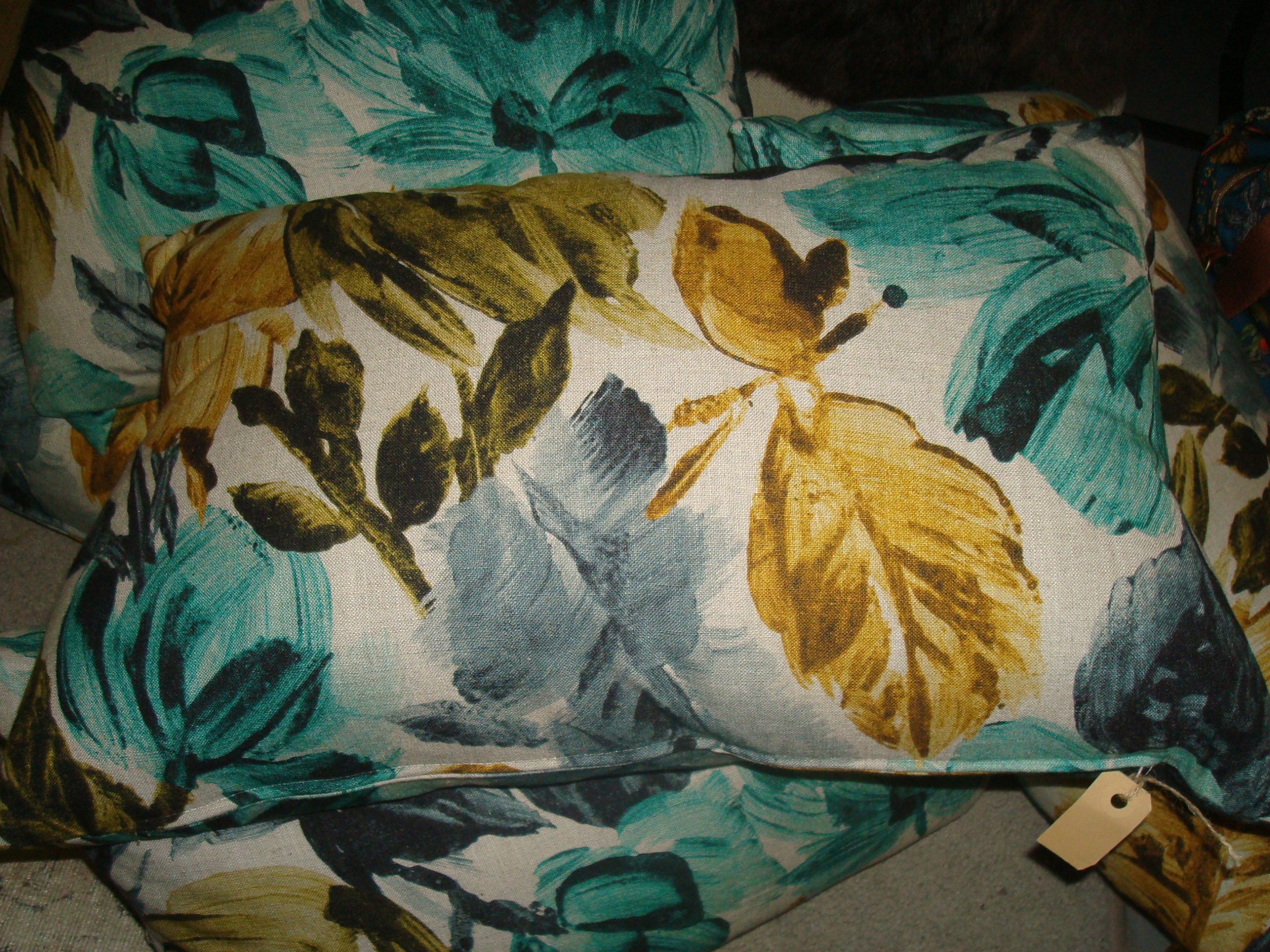 blauw geel aqua oker kussen 40x60cm langwerpig, Silvera, print bladeren incl. binnen kussen(op voorraad) V 1
