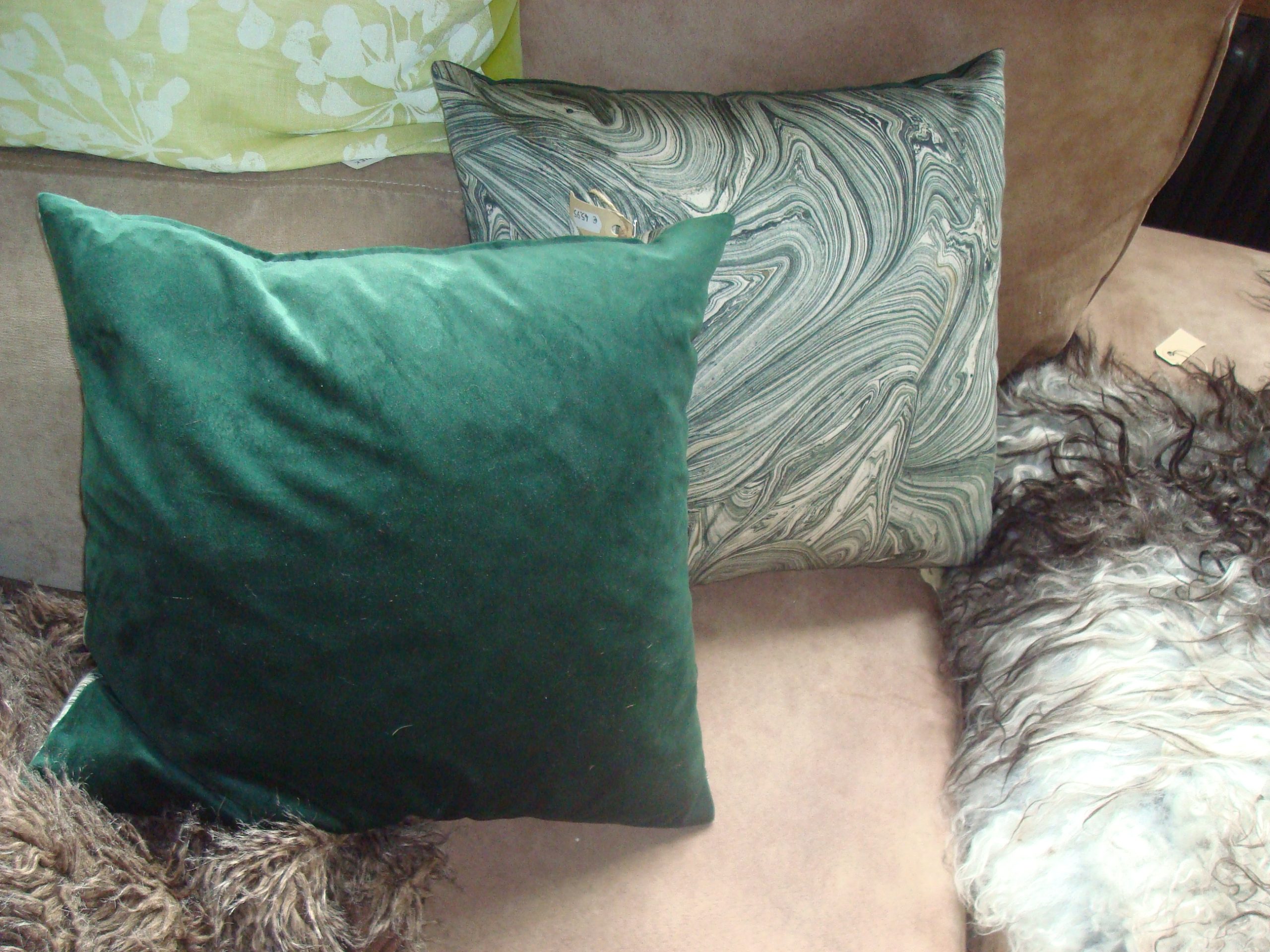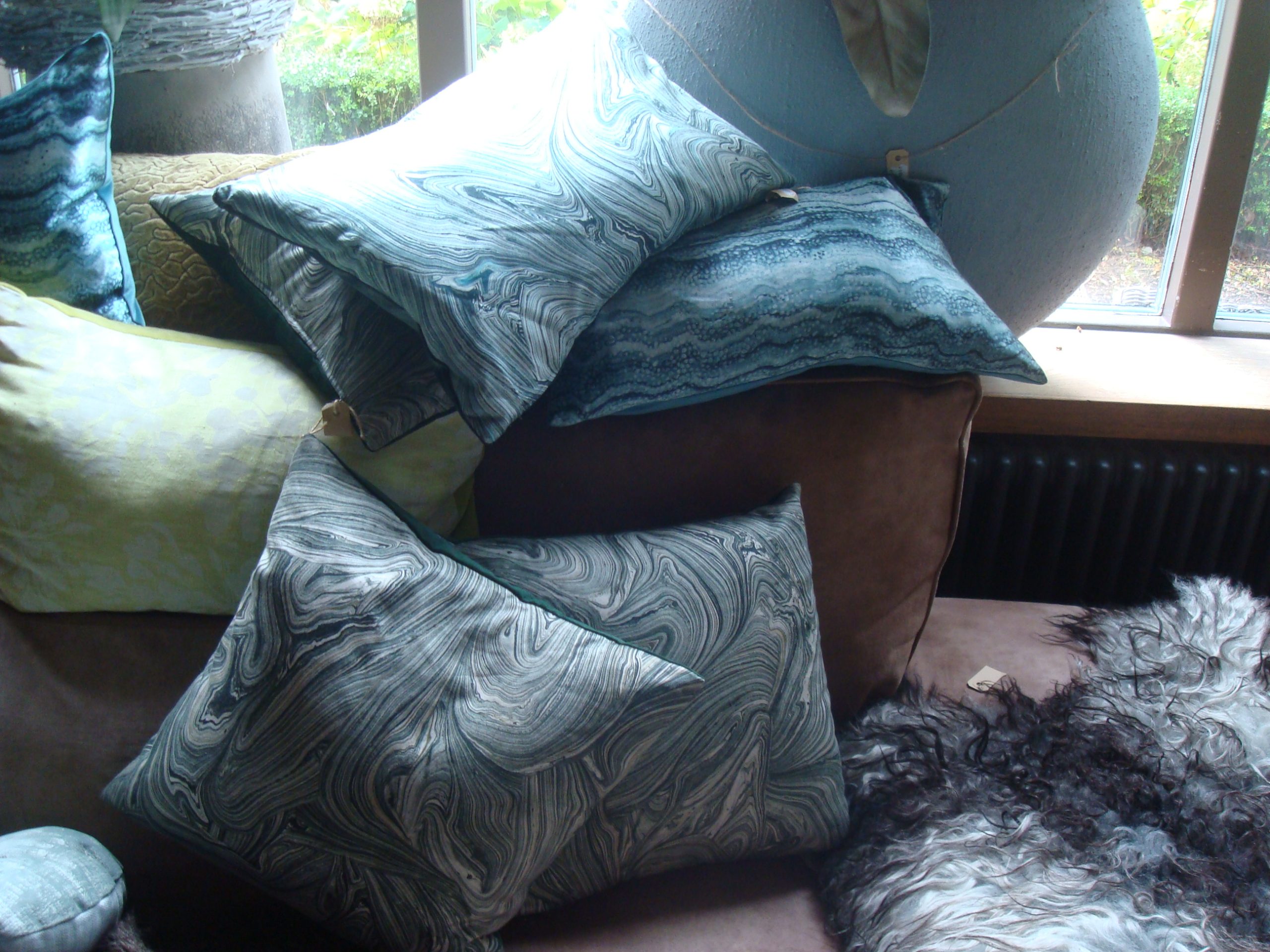 Groen blauw gemêleerd kussen 45x45cm vierkant, Silvera, print achterkant groen, incl. binnen kussen (op voorraad) V3