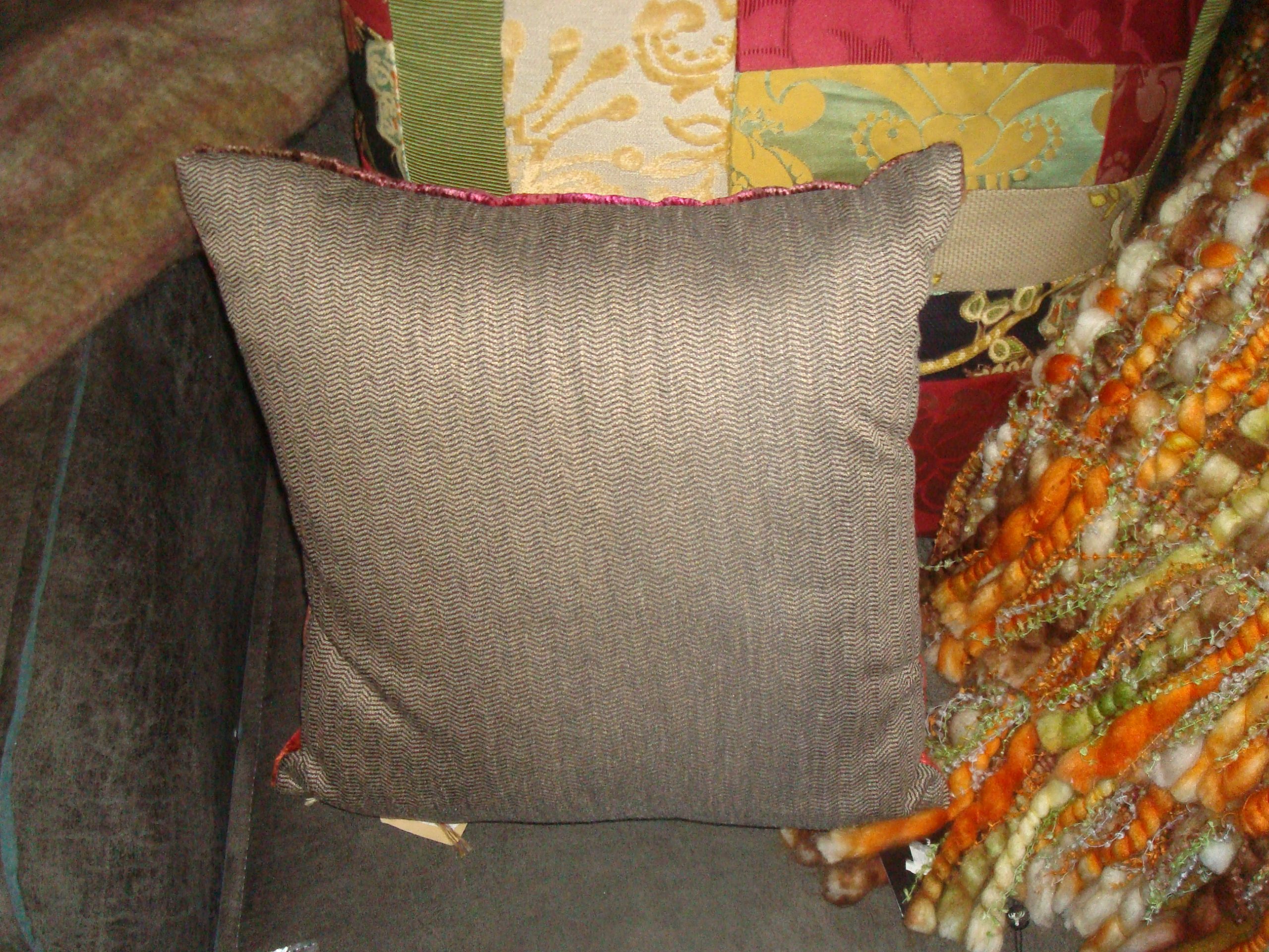 Rood bordeaux oranje roze kussen 45x45cm vierkant, Silvera, fluweel prachtig meerdere tinten de achterkant grijs incl. binnen kussen (op voorraad) V1