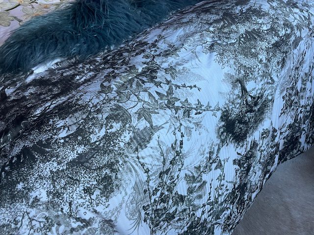Crème groen met bomen opdruk effen andere kant, plaid, sprei, wand, kleed doek polyester en velours fluweel zacht, Essenza, Aurelie , 220×265 cm, (op voorraad) V1