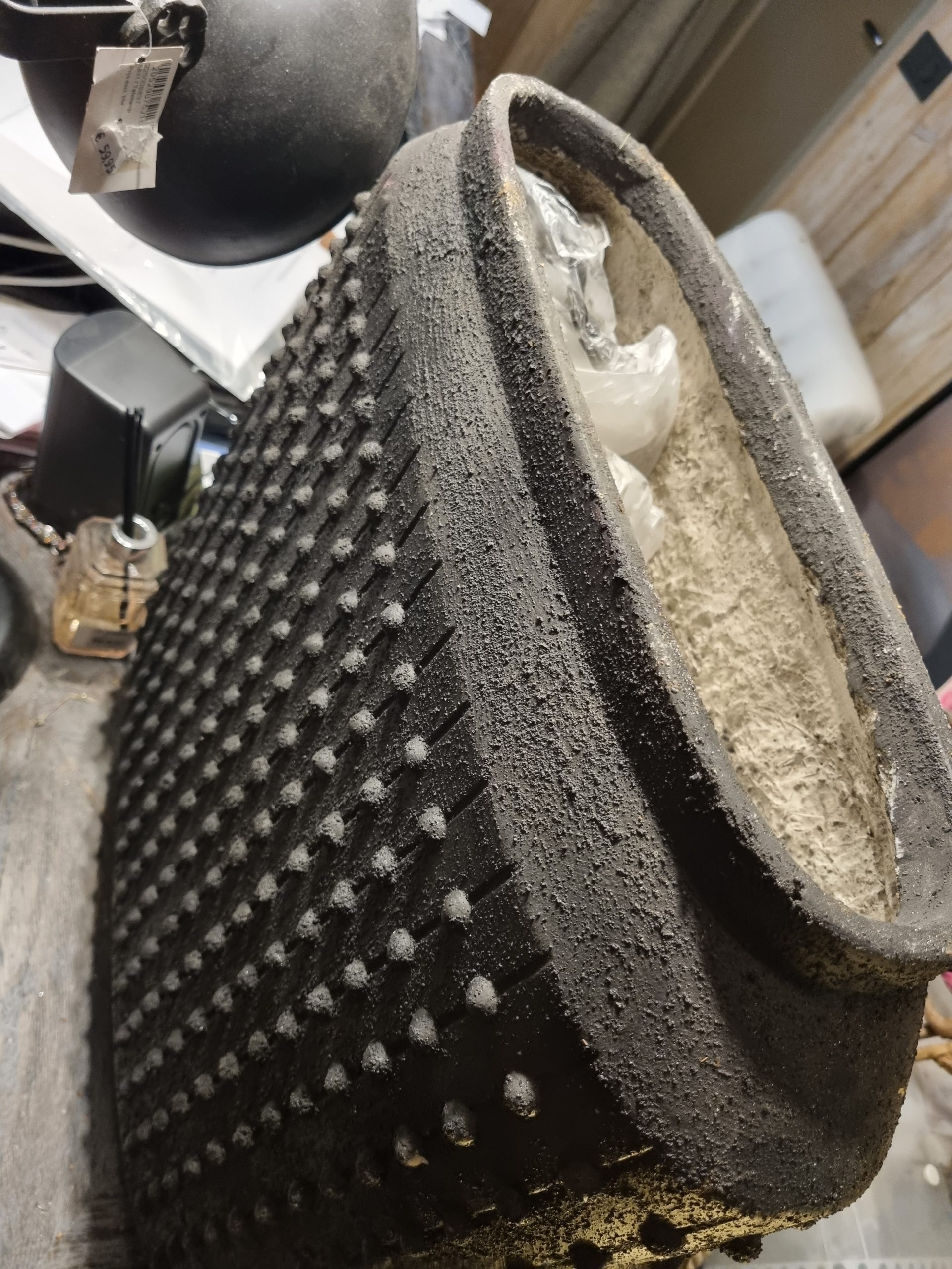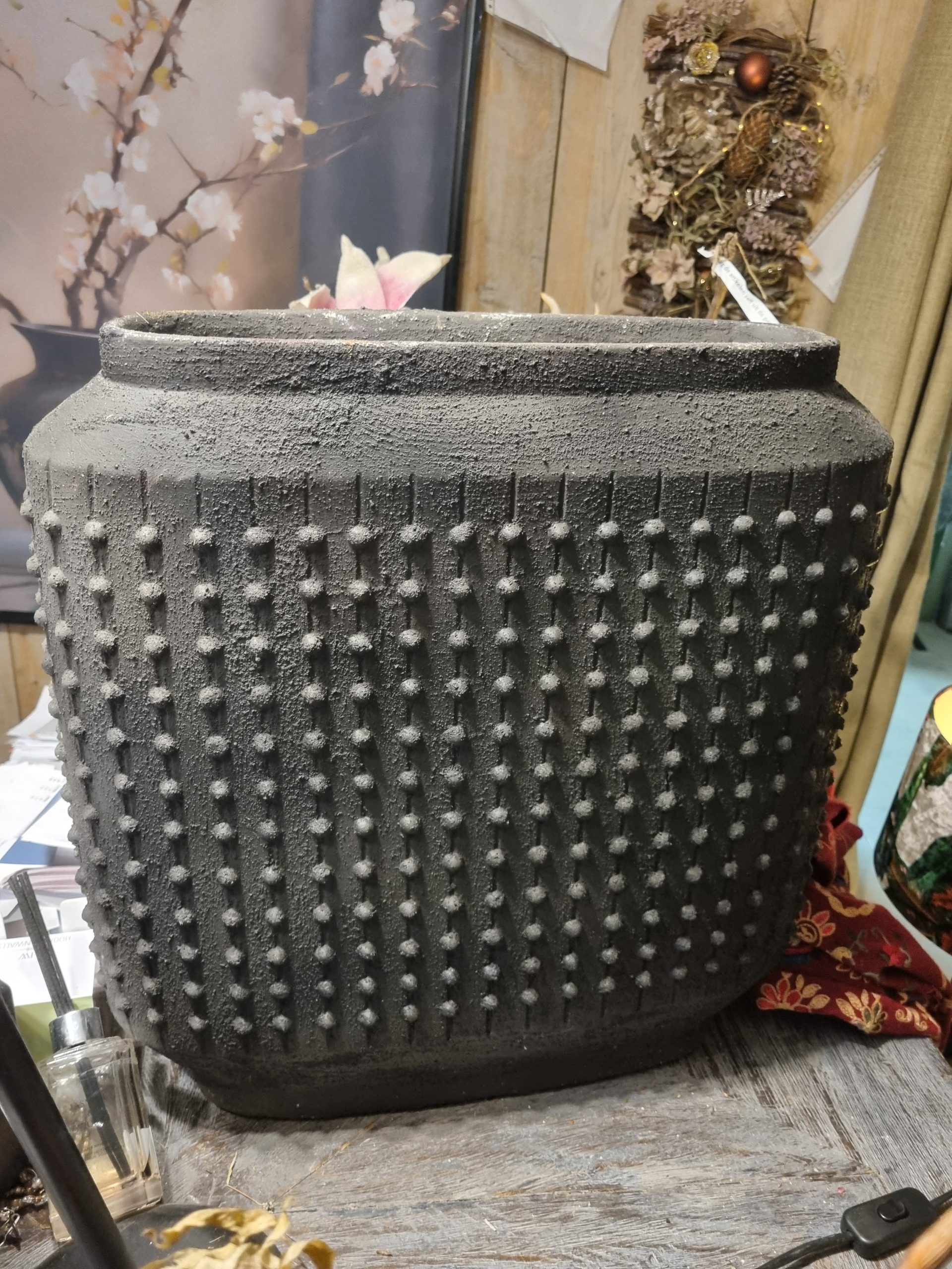 Zwart aardewerk langwerpige plant pot / vaas met noppen, 53 cm hoog x 50 cm lang x 15 cm breed, Ter steege, cement look (op voorraad) v 2