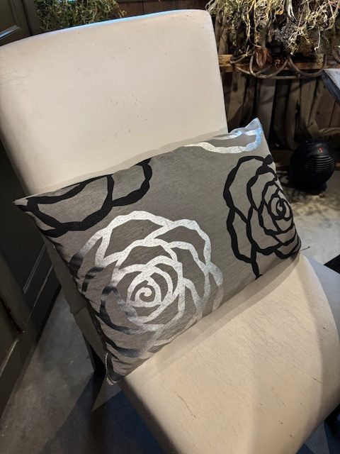 Zwart, grijs zilver linnenlook stof kussen, achterkant zilver, 60x40cm vierkant, M.M Metamorphosis, incl. binnen kussen ( op voorraad ) V1