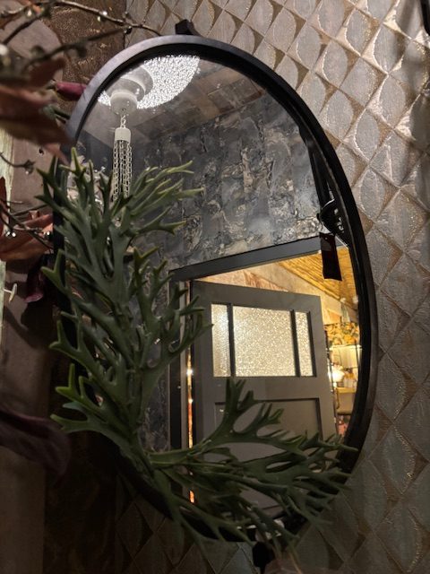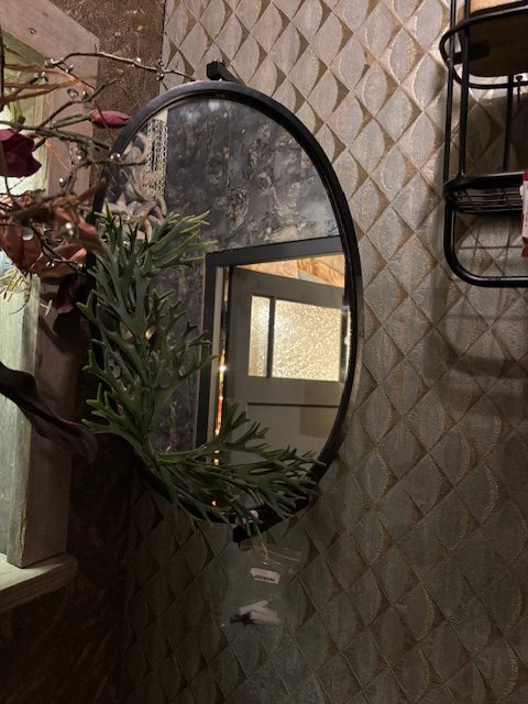 Zwart kleurige geheel van metaal met decoratie, verstelbare spiegel, Dutch bone white label,( Zuiver ) kan elke kant uit gebogen worden – Mirror Lara brass hoogte 48 en breed 30.5 ( op voorraad ) v1